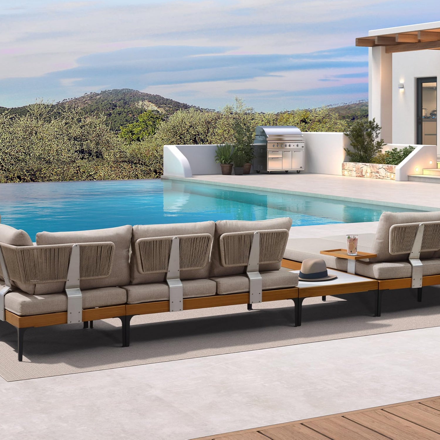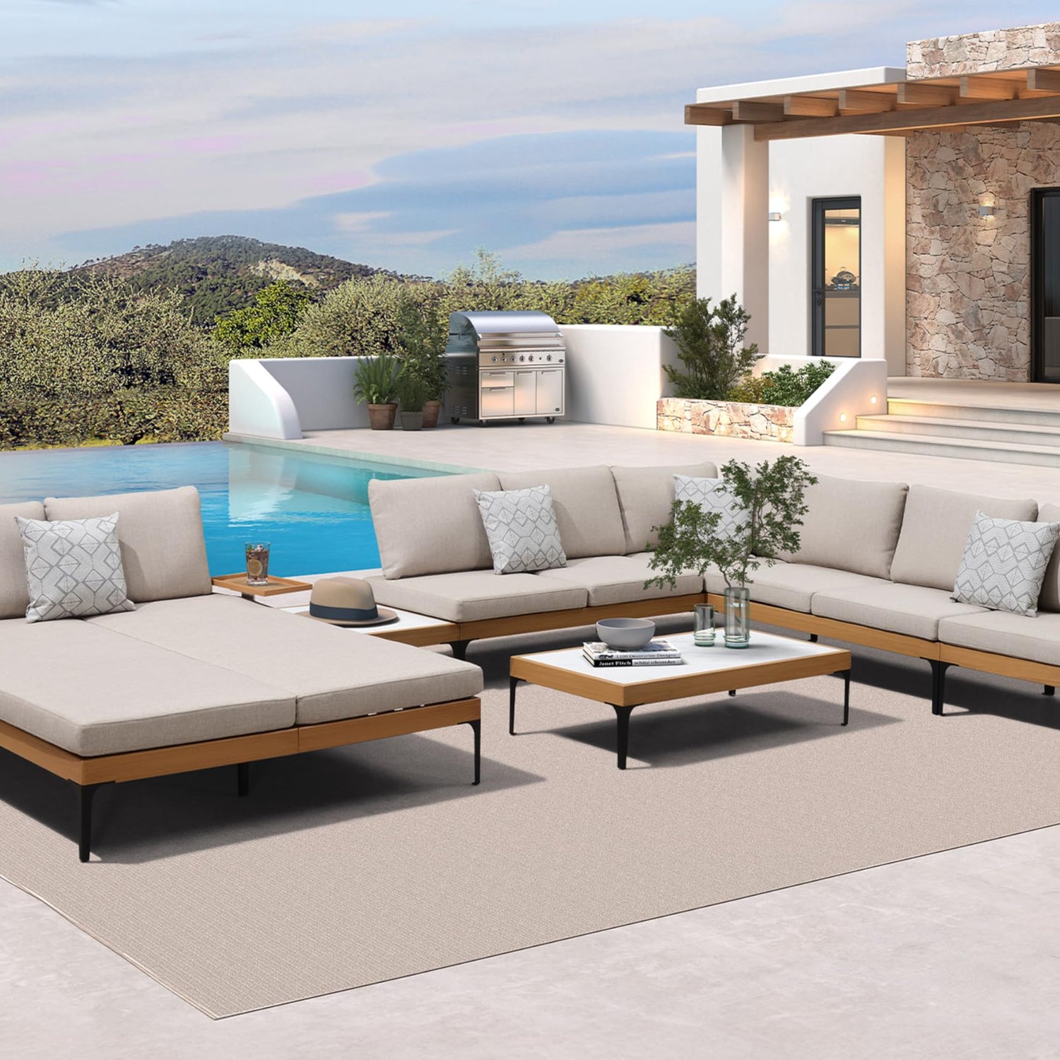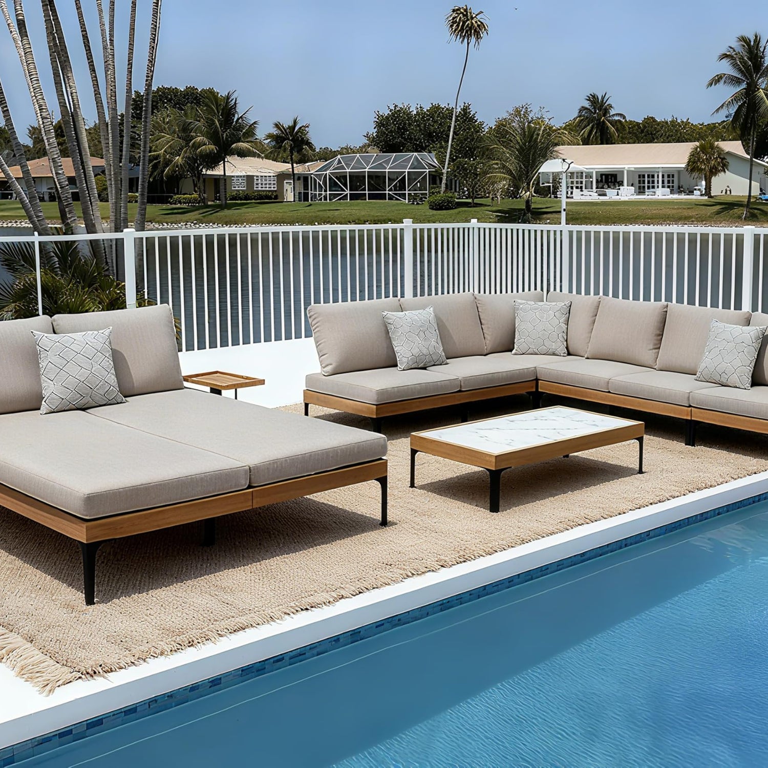 - All-Weather Furniture Set: Includes 1 x 5-seat L-shaped sofa, 1 x oversized daybed, 1 x rectangle table and 1 x square table, plus cushions and pillows.