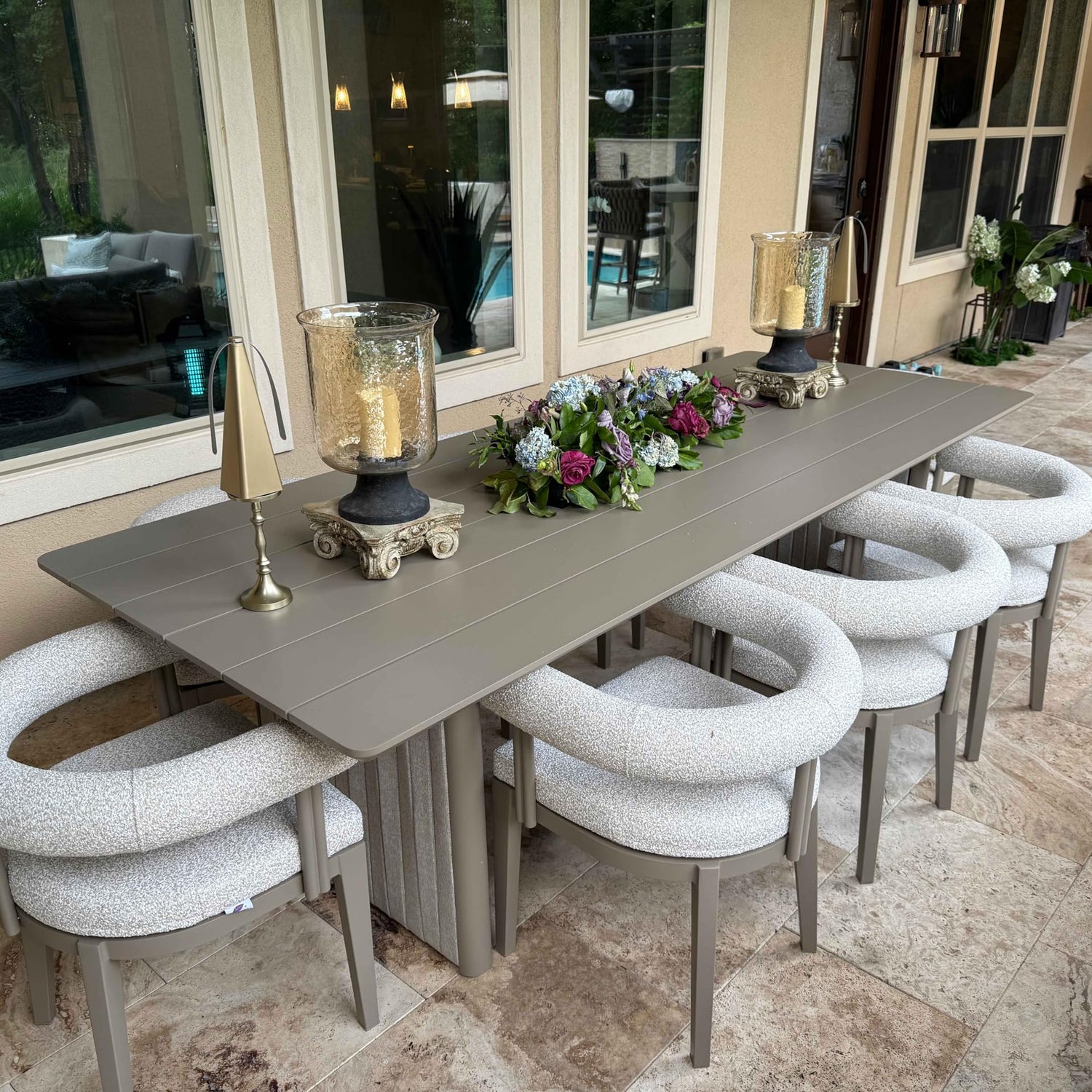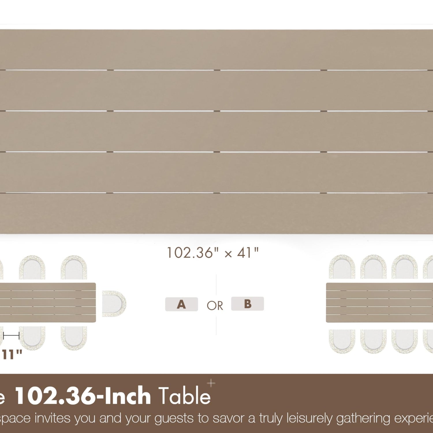 • Package: Includes 1 rectangular table (102.36"L x 40.15"W x 29.92"H), 8 chairs (19.69"W x 18.7"D x 27.95"H). Easy assembly.