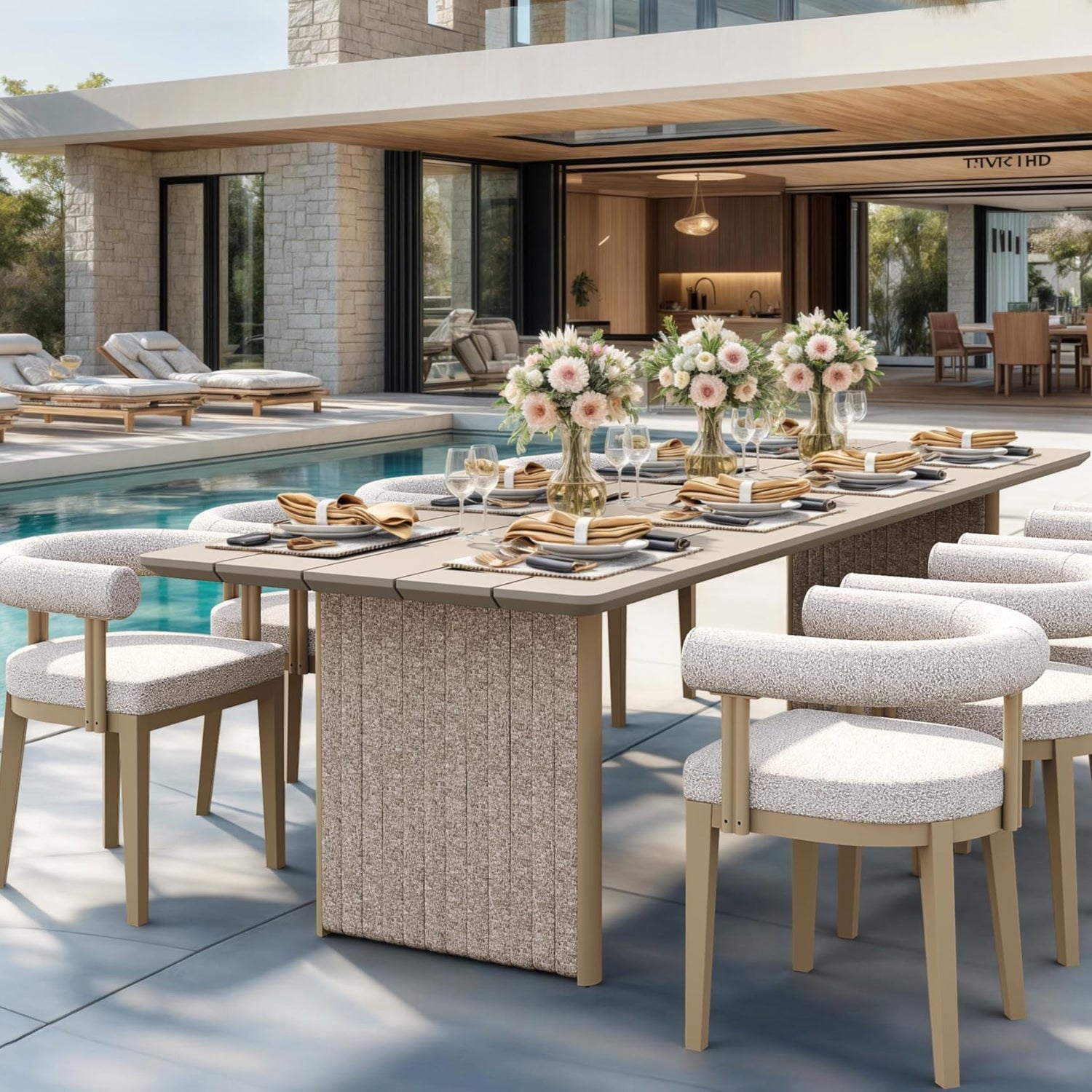 PURPLE LEAF Patio Dining Set 9 Pieces Luxury Modern Conversation Set Aluminum Large Rectangle Dining Table and Chairs with Olefin Cushion Outdoor Furniture Set for Garden Porch Deck Backyard