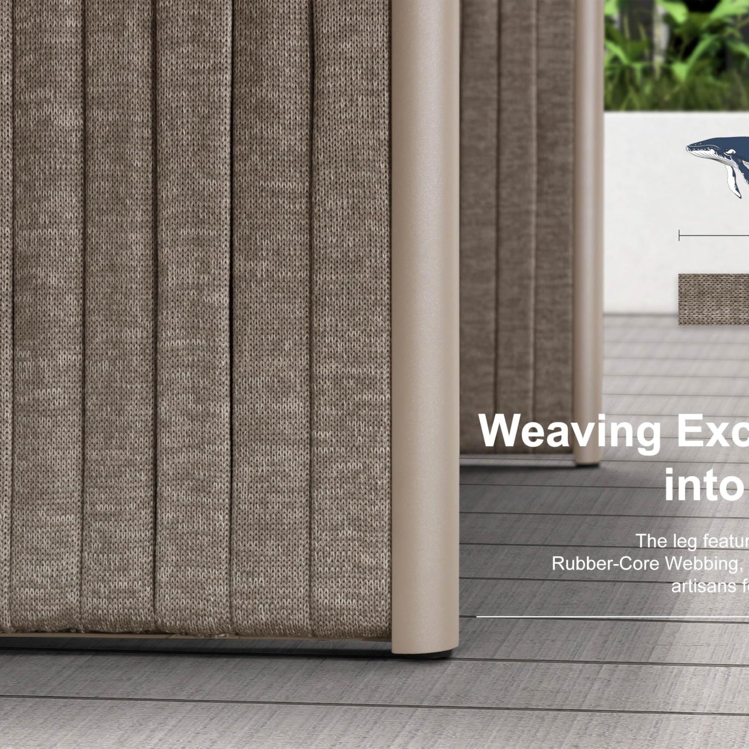 • Highlight Table: The 1.57"-thick no-splicing tabletop provides ample, uncrowded space. Table legs feature olefin braided ropes at the center for unique appeal.
