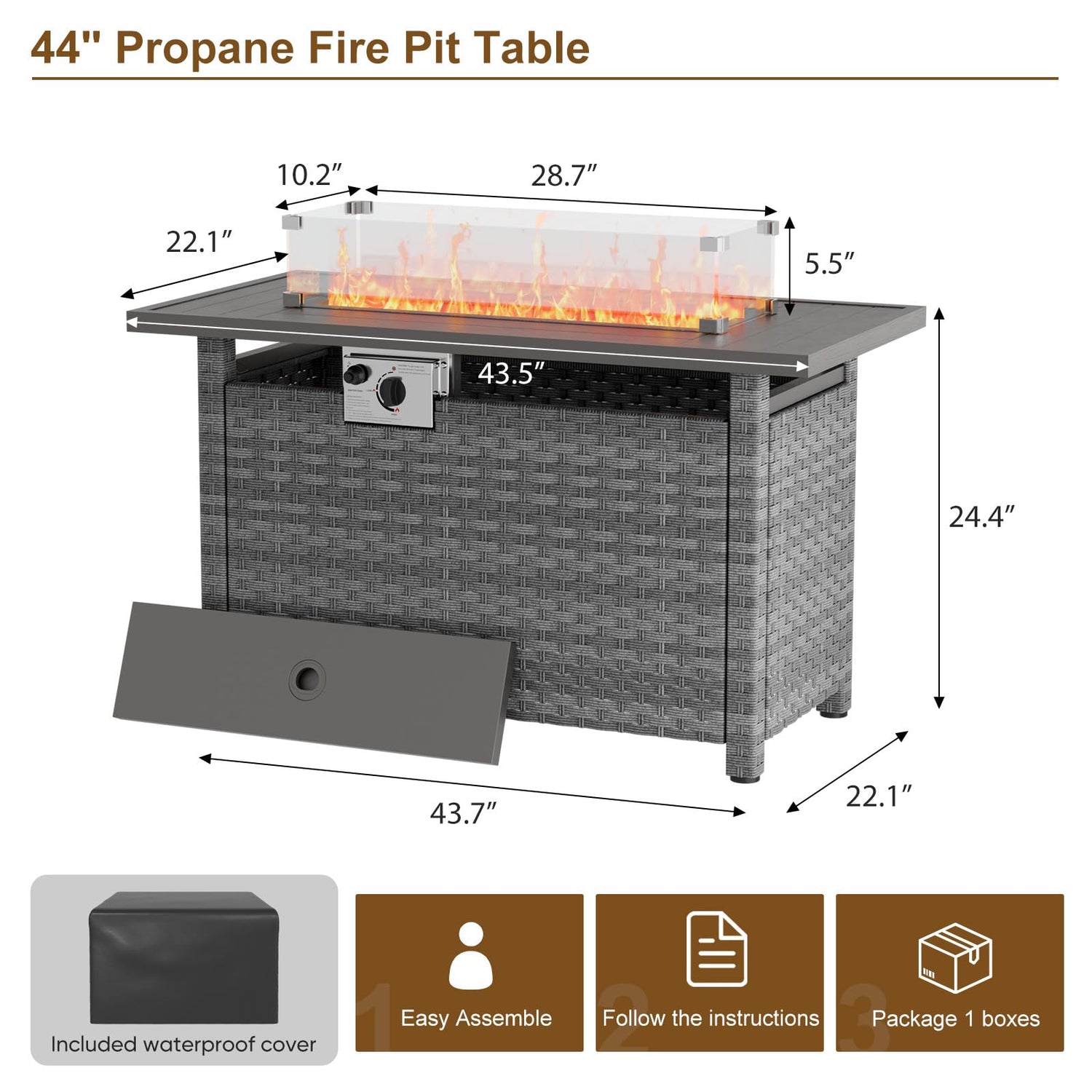 Restland Outdoor Half Moon Patio Furniture Set with Fire Pit Table, Grey Rattan Curved Patio Sectional Sofa, Wicker Conversation Set