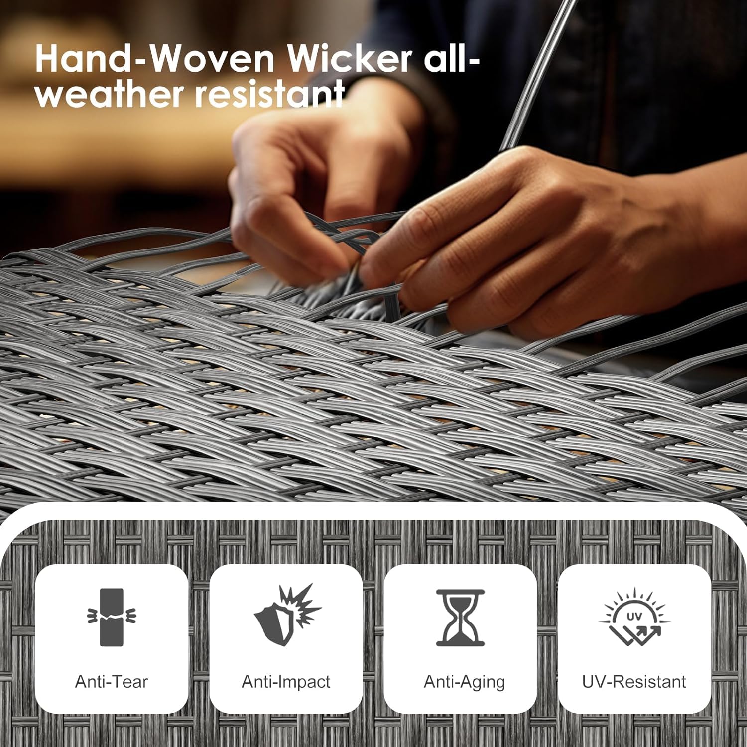 - 【DURABLE PREMIUM MATERIAL】All-weather hand-made PE rattan and anti-rust steel frame make this outdoor patio furniture set very durable and sturdy. Cushions and pillows feature olefin fabric with removable covers to make cleaning a breeze. Tempered glass tabletop ensures long-lasting durability.