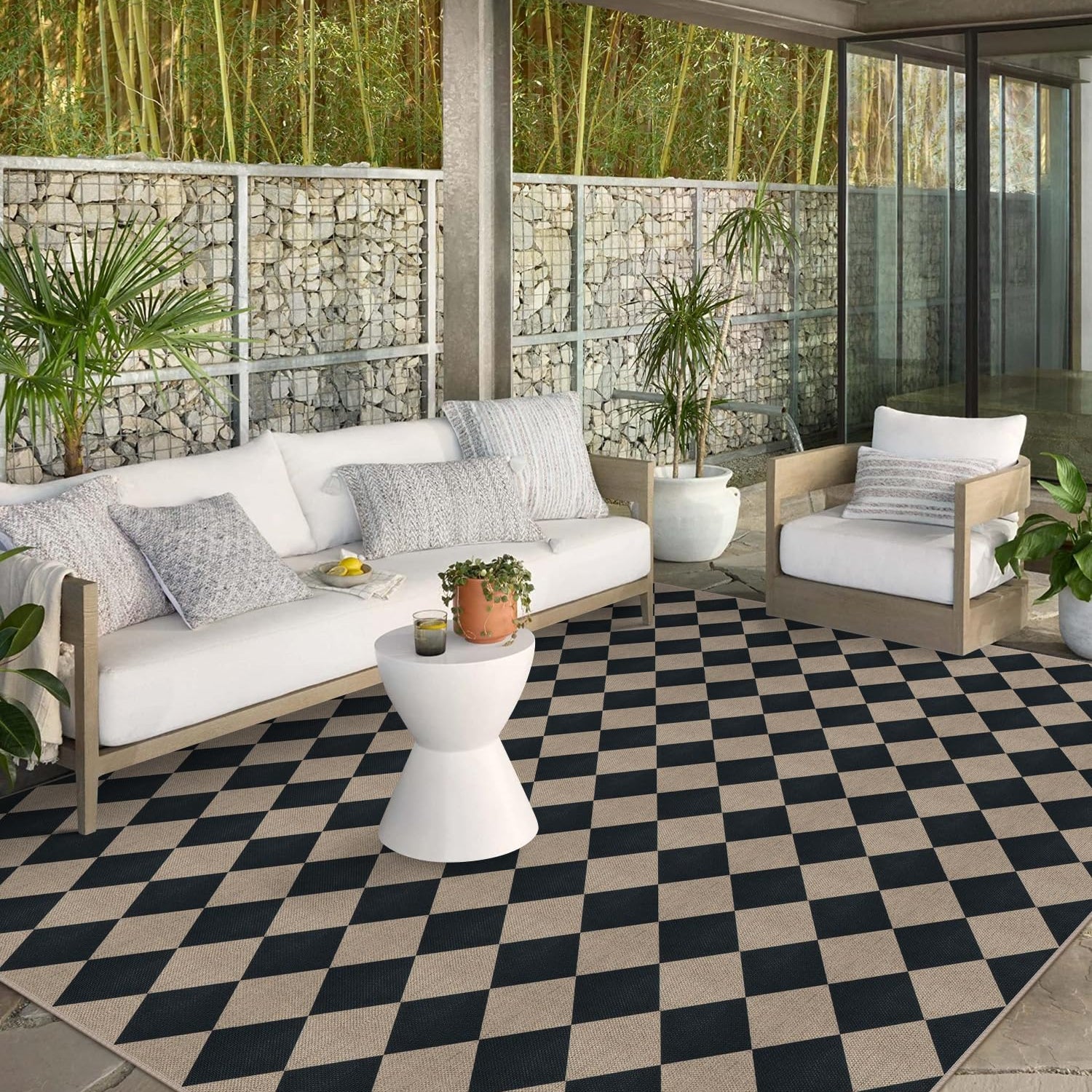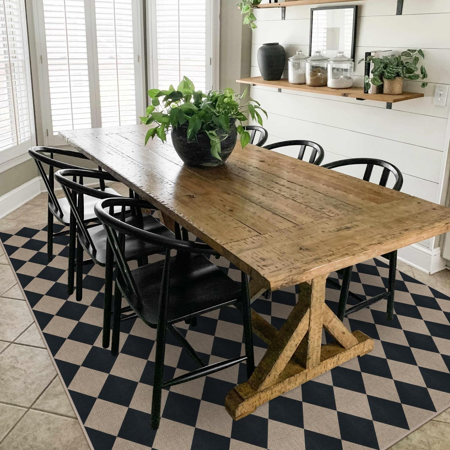 Rugalia Easy Jute Black Checkered 8x10 Area Rug, Washable Modern Outdoor Rug for Patio Non-Slip Diamond Rugs for Living Room, Neutral Farmhouse Floor Carpet for Bedroom Dining Room Classroom