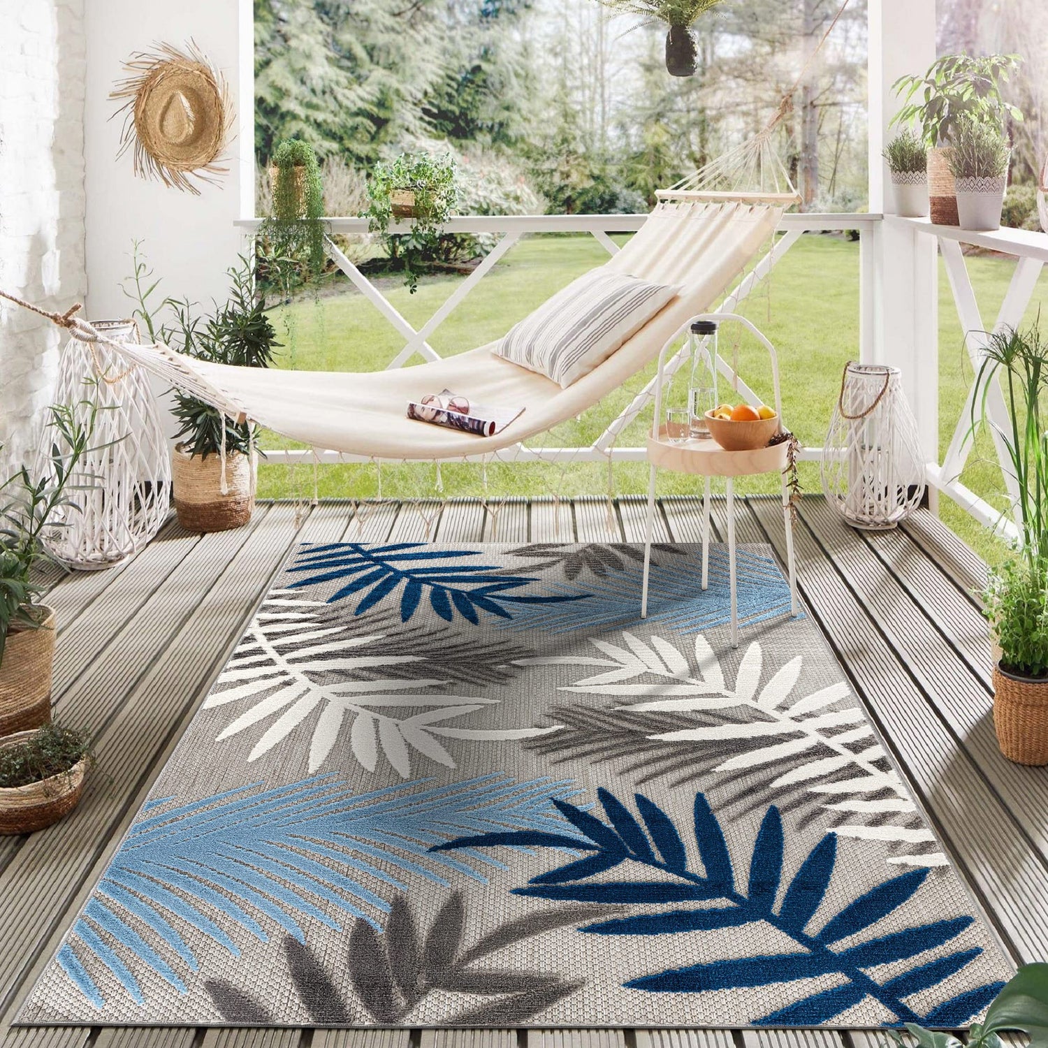 Rugshop Blue Palm Frond Indoor/Outdoor Area Rug Non-Shedding Easy Cleaning for Patio, Deck and Living Room, 5' x 7'