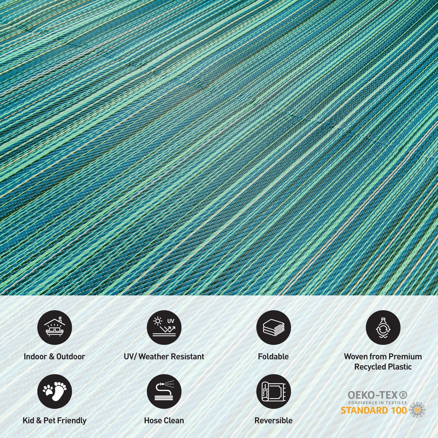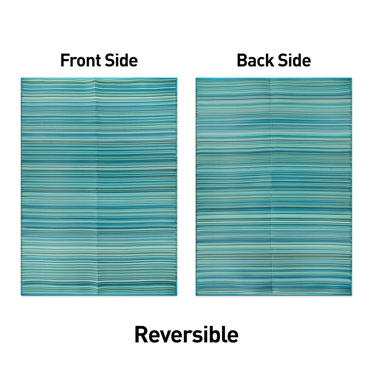 Rugshop Contemporary Stripe Reversible Foldable Waterproof Premium Recycled Plastic Outdoor Rugs for Patio,Backyard,RV,Deck,Picnic,Trailer,Beach,Camping Rug 6' X 9' Blue