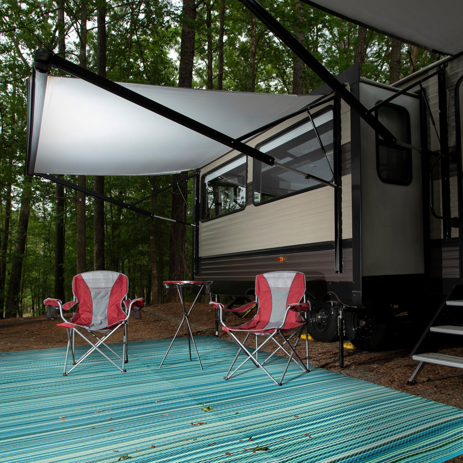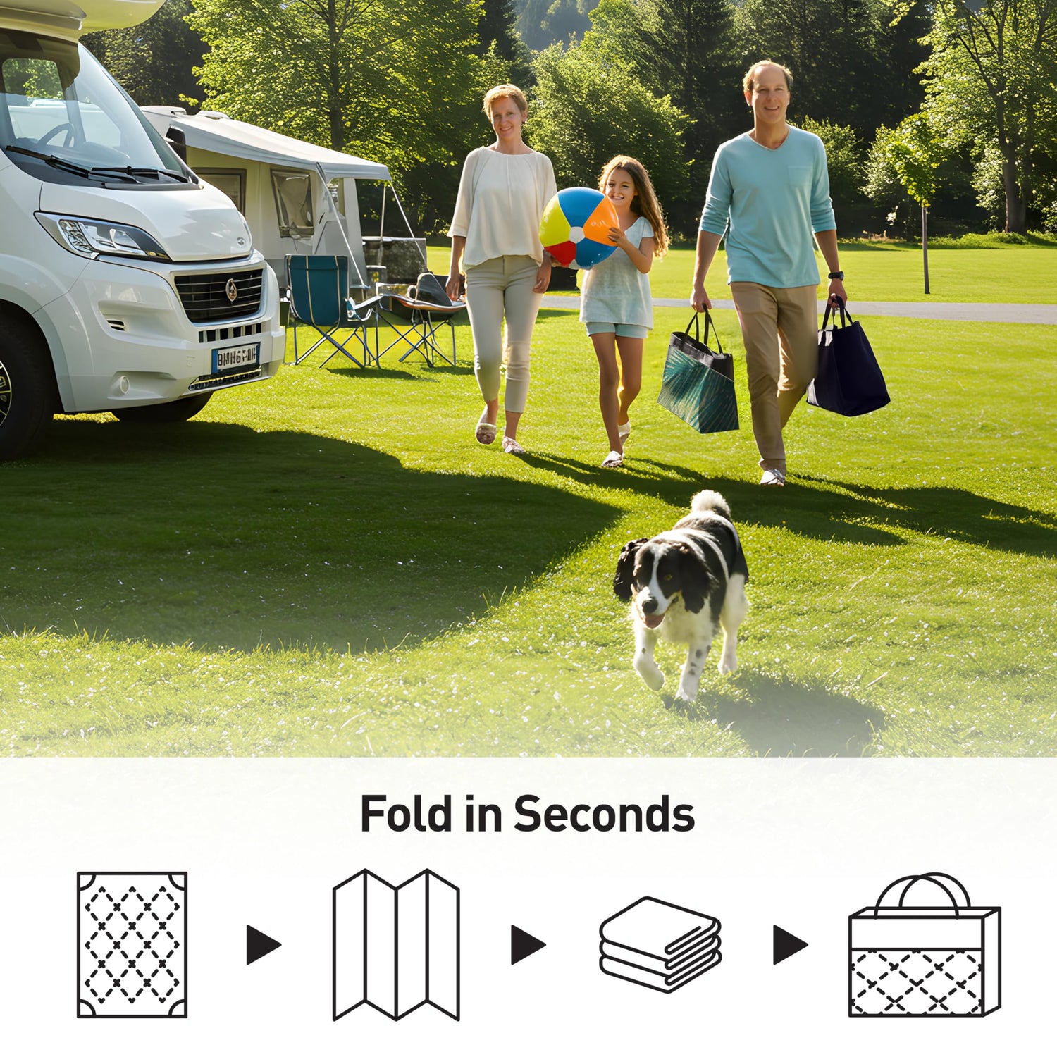 - Polypropylene Machine-Made Rug: This 5' x 7' reversible outdoor rug is crafted from durable polypropylene material, making it stain-resistant, waterproof, and suitable for high-traffic areas like patios, backyards, and camping trips.