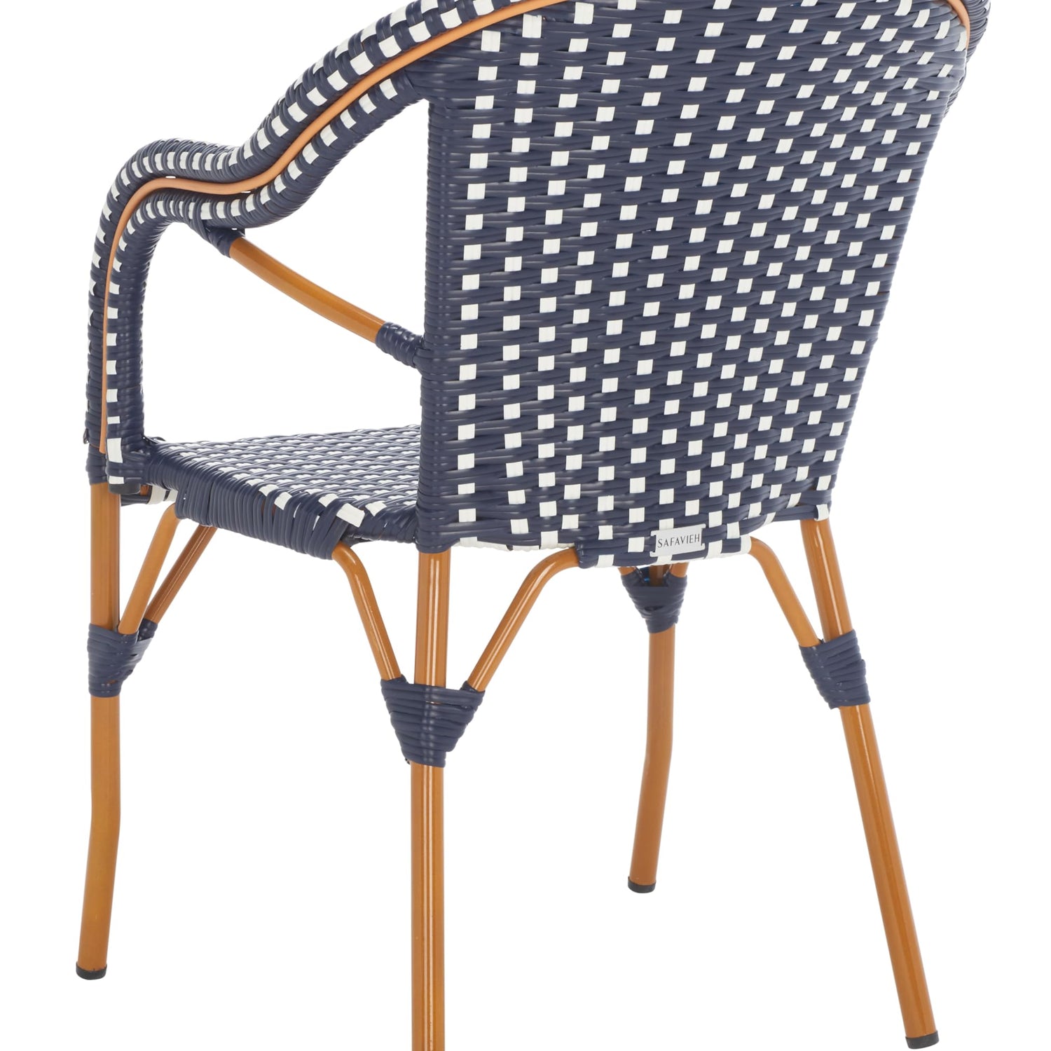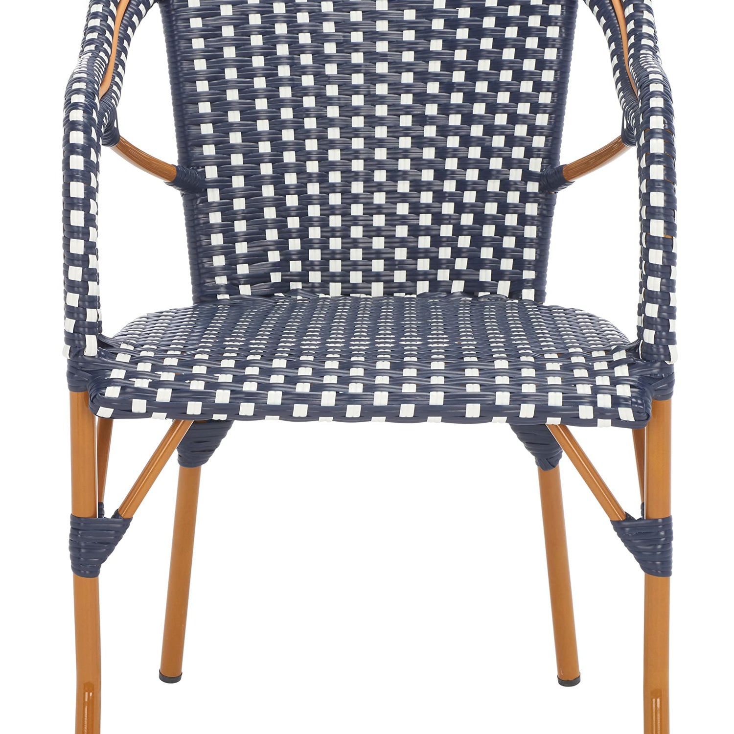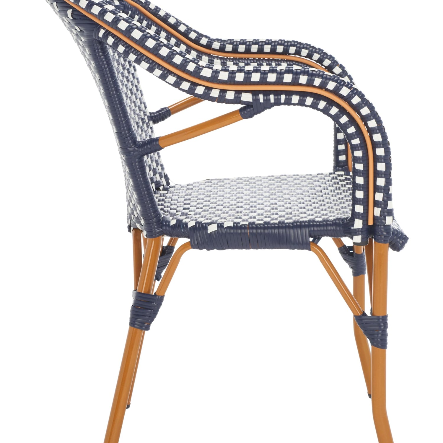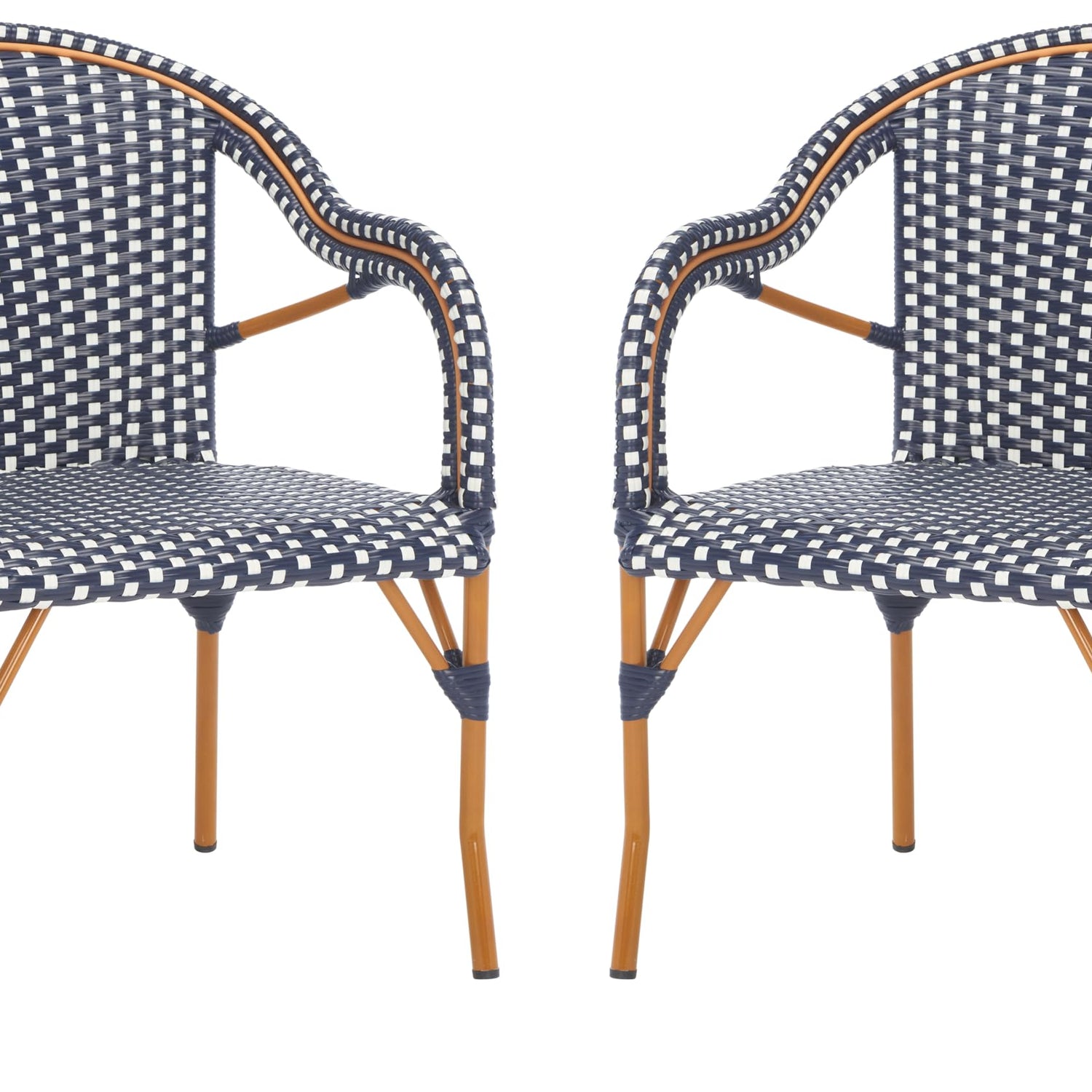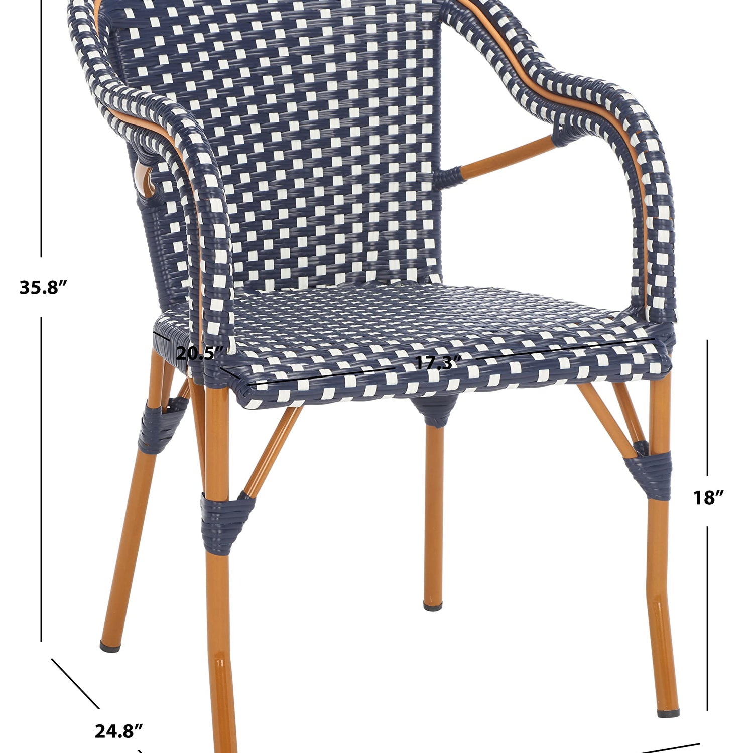 SAFAVIEH Outdoor Collection California Navy/White 18-inch Bistro Arm Chair Set of 2 (Fully Assembled)