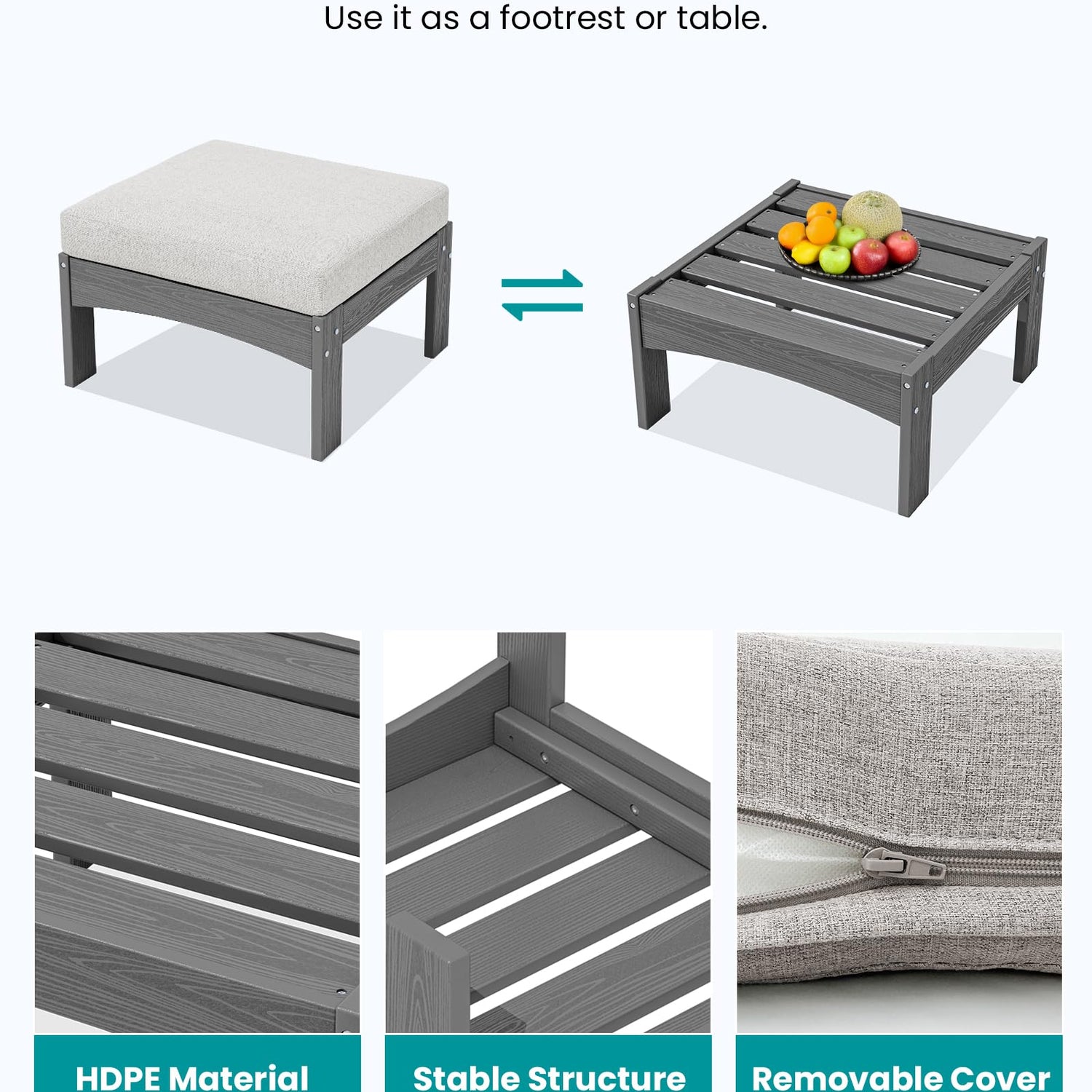 - Multi-Functional Ottoman: Use as a footrest, extra seat, or remove cushion to convert into a small coffee table, adding versatile seating and functional surface to your patio sectional