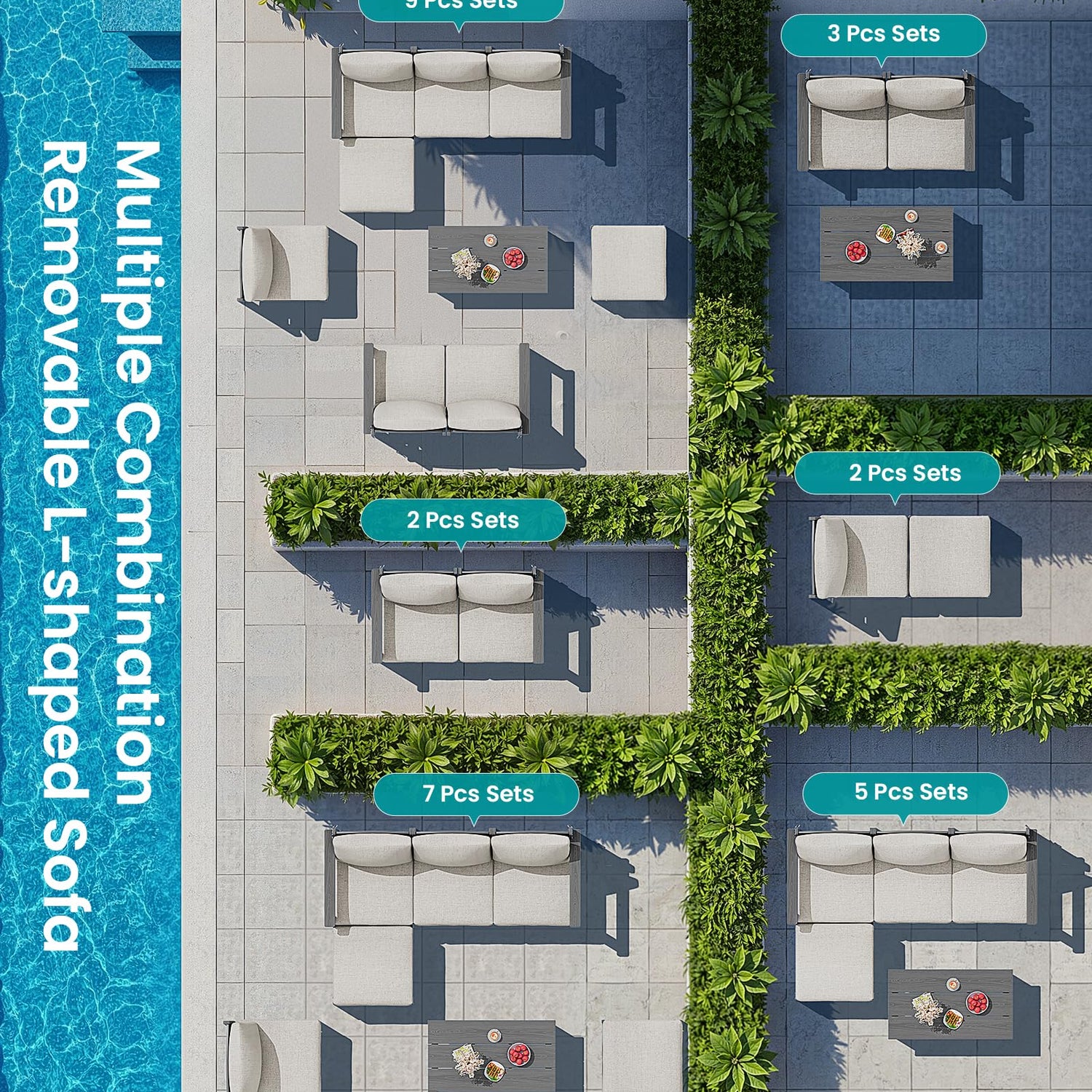 - Removable & Washable Covers: Zippered cushion covers are fade-resistant, breathable, and waterproof. Equipped with anti-slip ropes, they stay securely in place on your outdoor sectional sofa while being easy to remove and clean