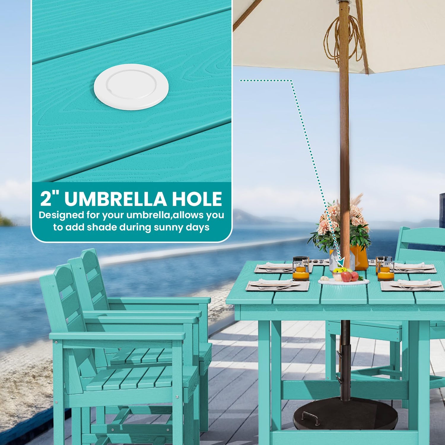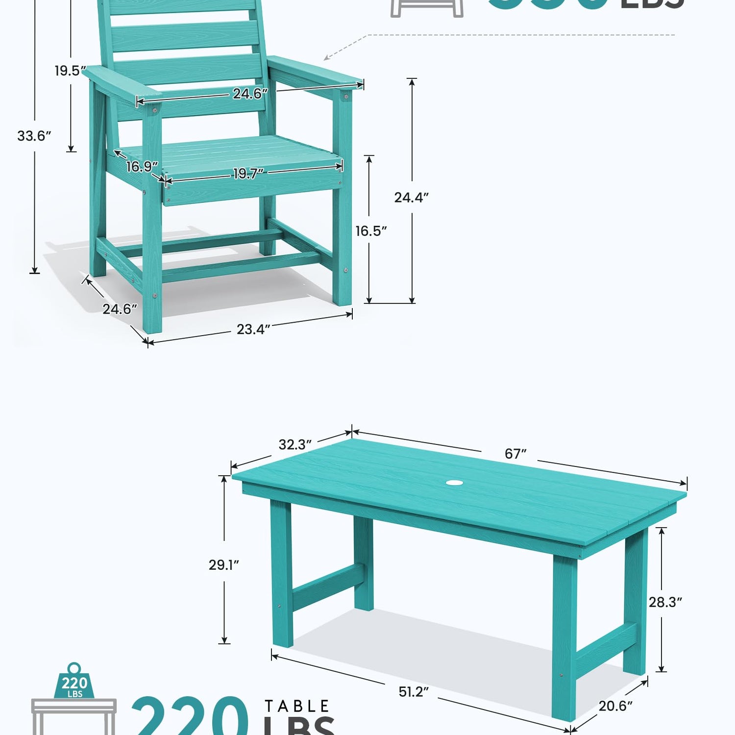 - 【Indoor & Outdoor Use】Different from the normal HDPE dining sets, our patio dining table and chairs are designed with wood texture. The classic appearance makes these dining table sets more usable for indoor or outdoor.