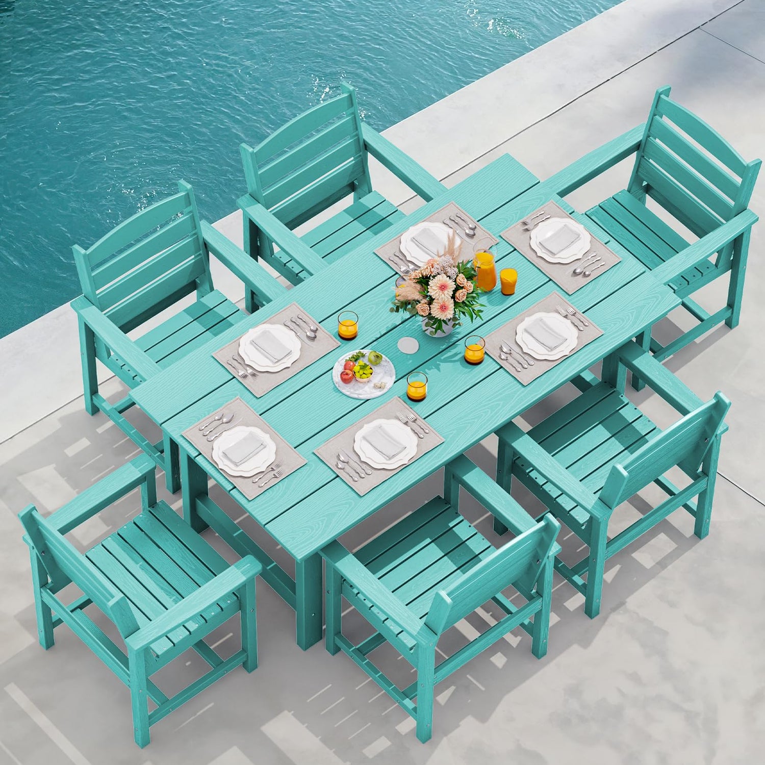 - 【Low Maintenance】HDPE dining table sets required low maintenance. Unlike the Steel dining sets may require rust prevention, SERWALL patio dining table and chairs are easy to clean with just soap and water, requiring minimal effort to keep them looking fresh.