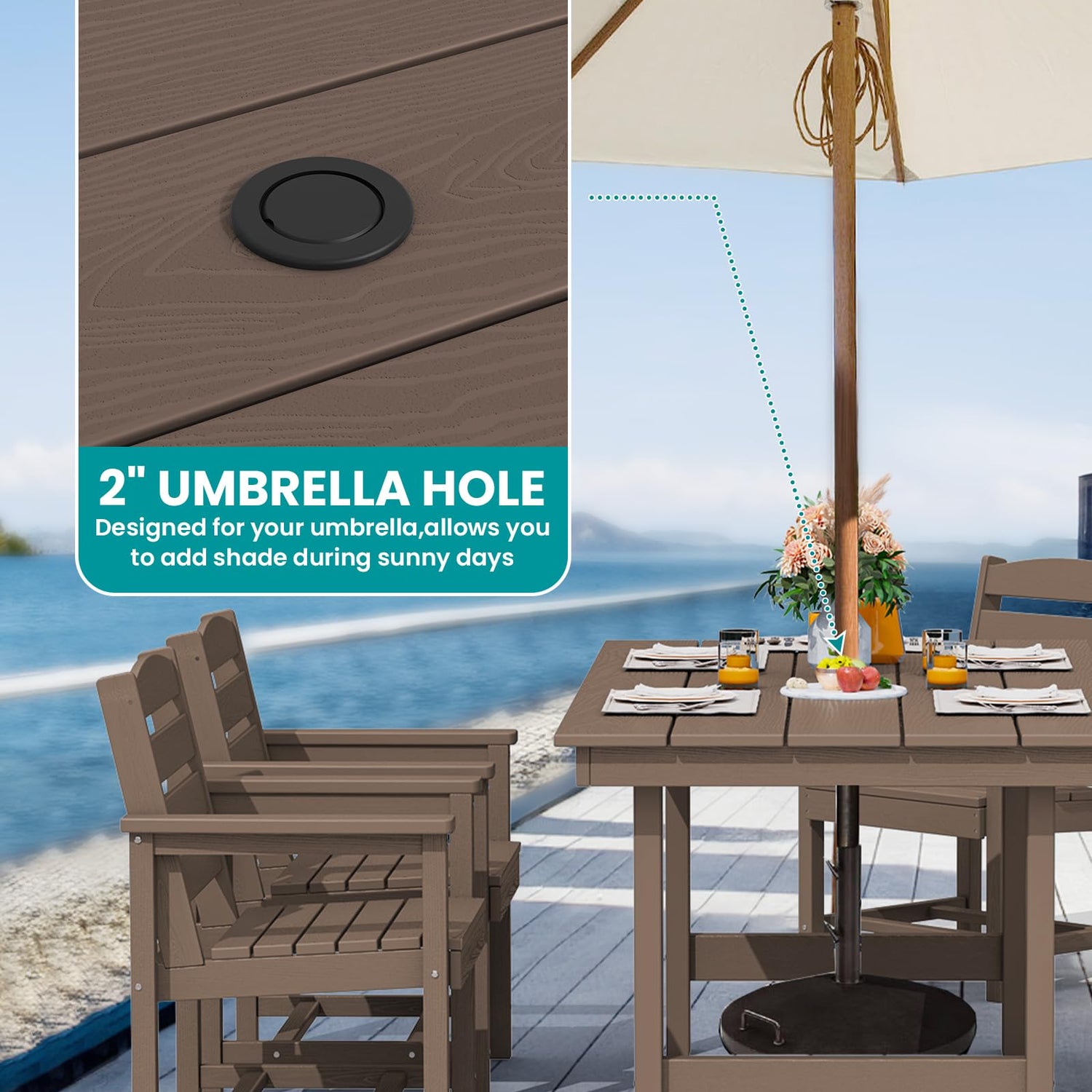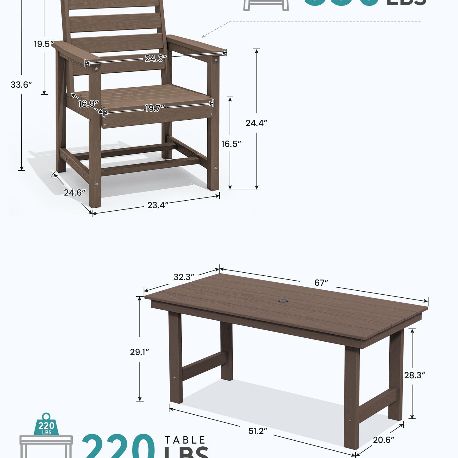 - 【Indoor & Outdoor Use】Different from the normal HDPE dining sets, our patio dining table and chairs are designed with wood texture. The classic appearance makes these dining table sets more usable for indoor or outdoor.