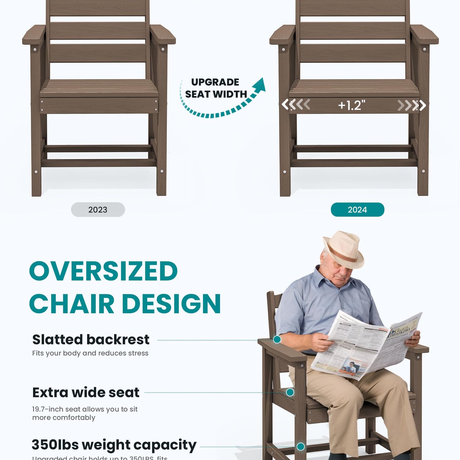 - 【Comfortable Dining Chairs】This patio dining chair is perfect for your family gathering. Featuring its armrest and slatted seat, adding extra comfort to the chairs. Each chair measures 23.4"D*23.6"W*33.6"H, its weight capacity is up to 330LBS.