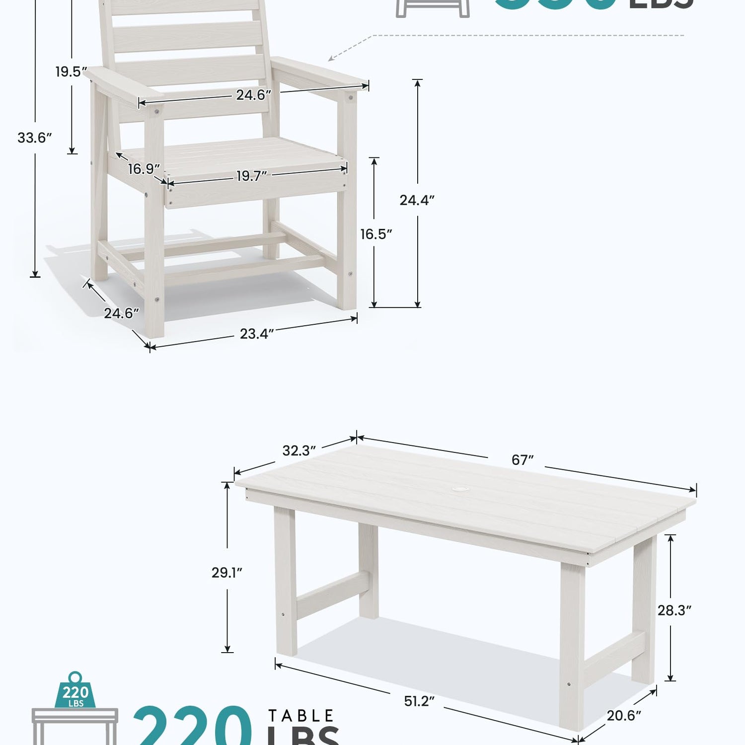 - 【Family-Friendly】HDPE patio dining table sets are family-friendly, providing a comfortable and safe space for outdoor meals and gatherings. The rounded edges are safer than sharp steel frames, ideal for families with children.