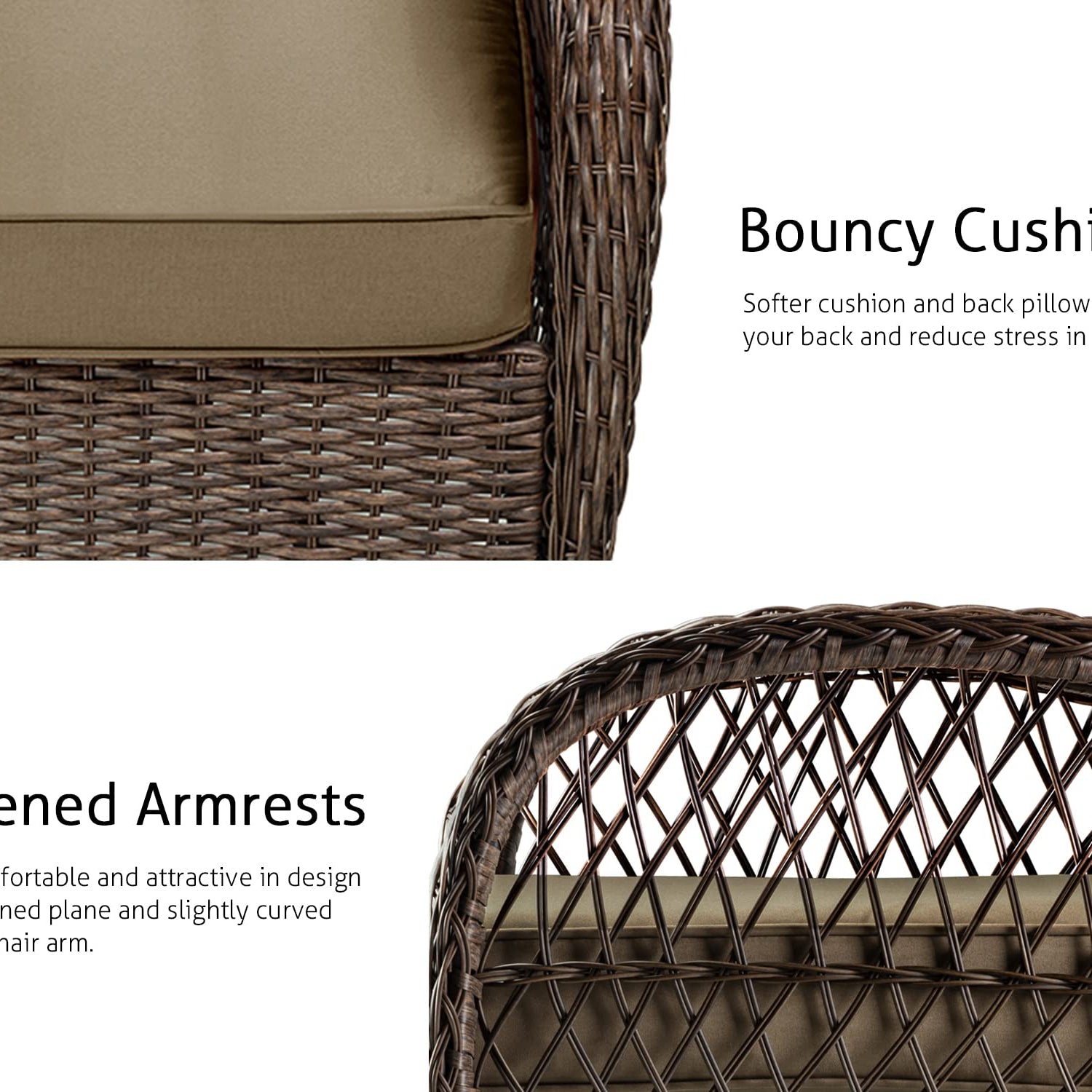 • FOAM-FILLED CUSHIONS & PILLOW - 4" high-density sponge cushion and 6" thickened back pillow with waterproof, eco-friendly and much more comfortable fabric.
