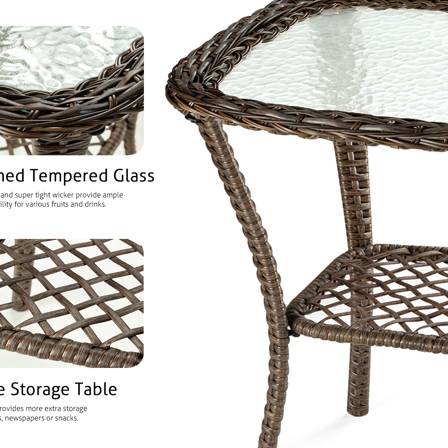 • MODERN & ELEGANT DESIGN -Three colors are suitable for any occasion. Fancy rattan and wavy glass table is embellishment for outdoor space. The bistro set can be placed on patio, balcony, lawn and other outdoor or indoor area.