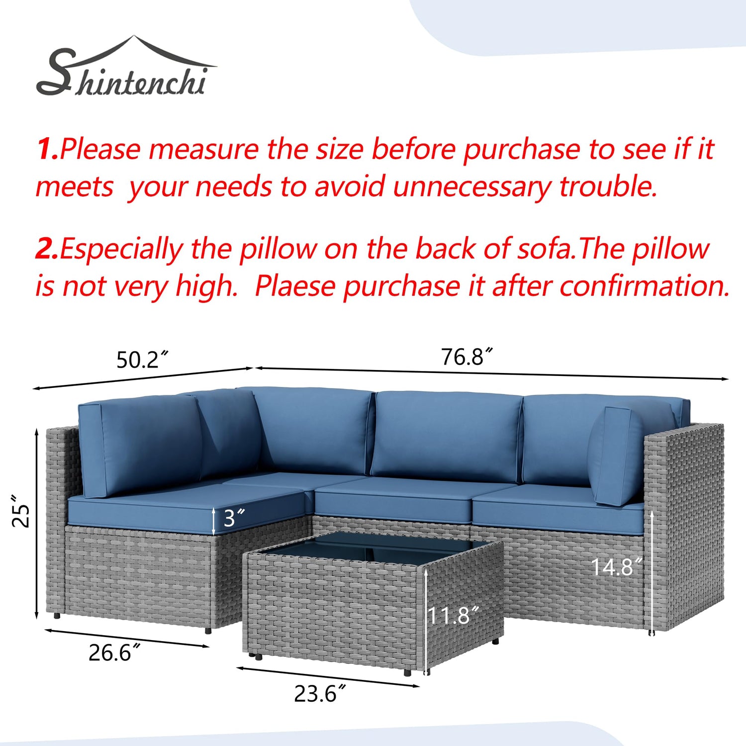4. Please cover the set when rain, snow or frost comes since the inner sponge is not water proof.