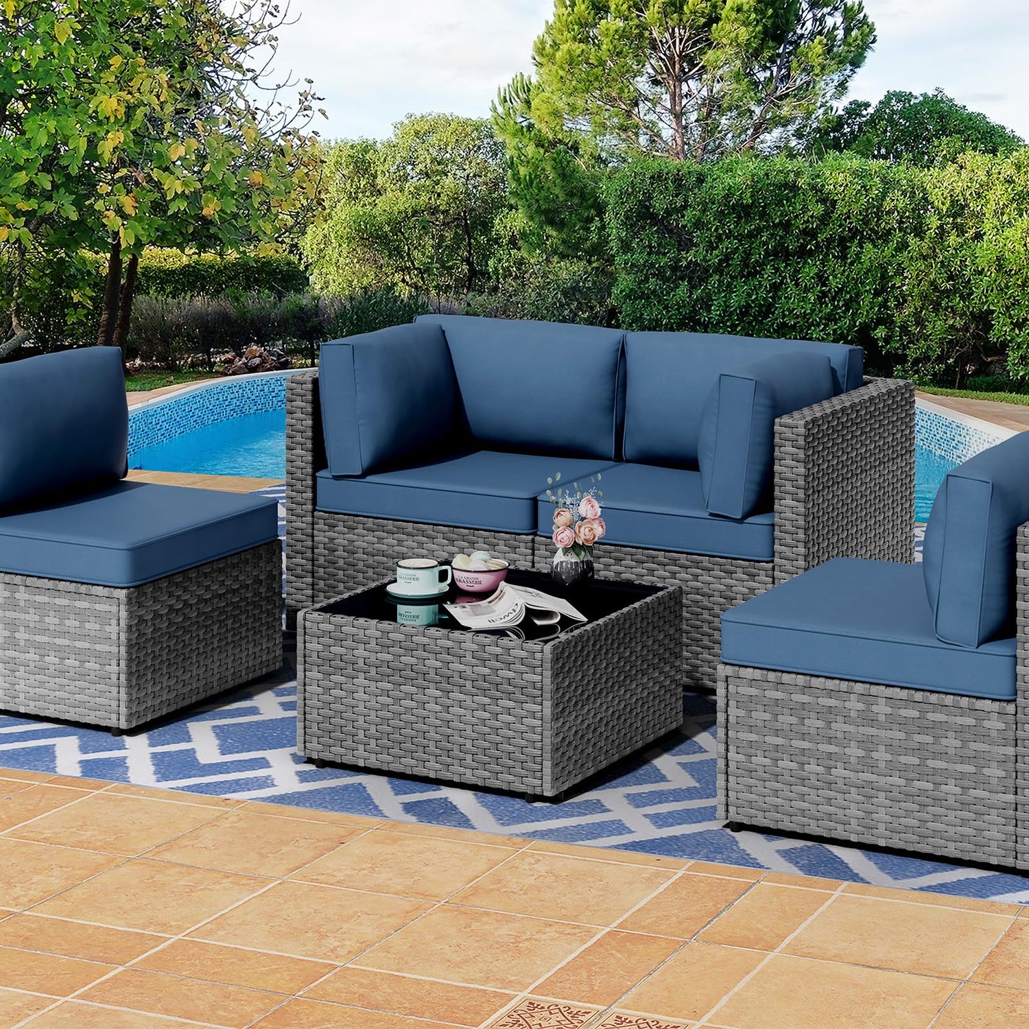 Shintenchi 5 Pieces Outdoor Patio Furniture Sets, Patio Sectional Sofa Couch, Furniture Modular Patio Conversation Sets Patio Sofa with Coffee Table (Aegean Blue)