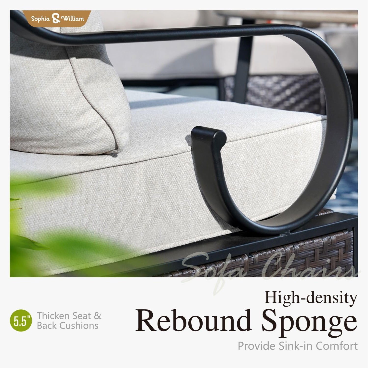 • All-weather Resistant: Enhance your outdoor living space with the Sophia & William modern patio furniture set . Built to withstand all weather conditions, this outdoor furniture boasts a thicken steel frame with E-coating for excellent rust-proof ability and long-lasting durability. Durable steel tube adds stability and weight capacity up to 350 lbs(single sofa chairs), ensuring a luxurious outdoor experience for you and your guests