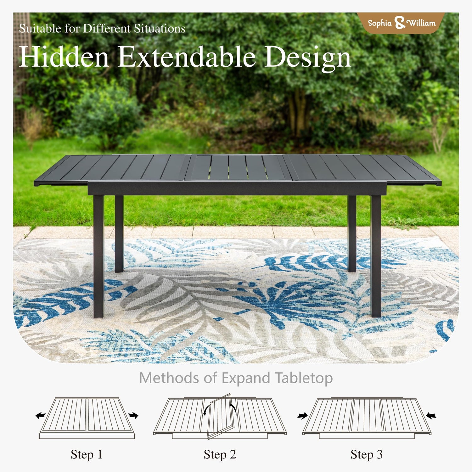 Sophia & William 9 Pieces Patio Dining Set for 6-8 People, Expandable Rectangular Metal Outdoor Table and Rattan Chairs with Cushions, All Weather Patio Table and Chairs Set