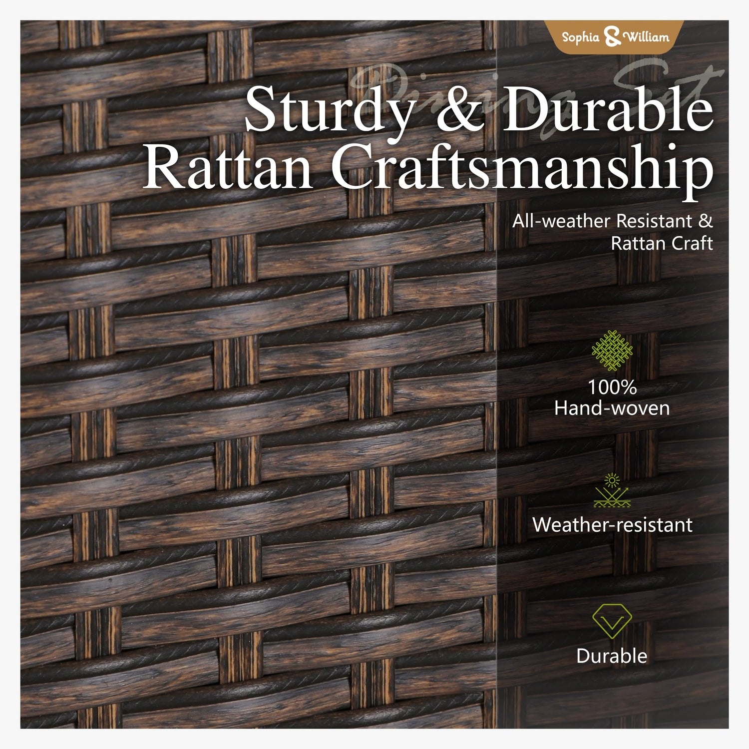- Durable Rattan Material: Our outdoor dining chair features exquisite handwoven PE wicker, providing a sophisticated and elegant look that enhances any outdoor setting while offering superior durability. Load capacity: 330 lbs. Dimension: 25" D x 22.8" W x 34.5" H, seat: 19.5" W x 19.5" D