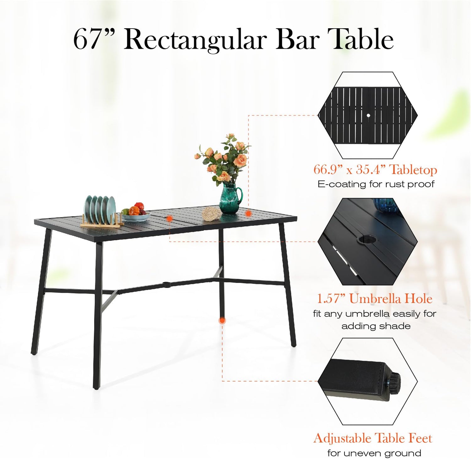 - 【Supportive and Comfortable】Enjoy the ultimate comfort with our patio bar set featuring a supportive backrest, armrests and footrests, providing a relaxing and ergonomic seating experience for extended periods. Seat height: 30, weight capacity: 300 lbs. Table size: 66.9L x 35.4W x 39.8H