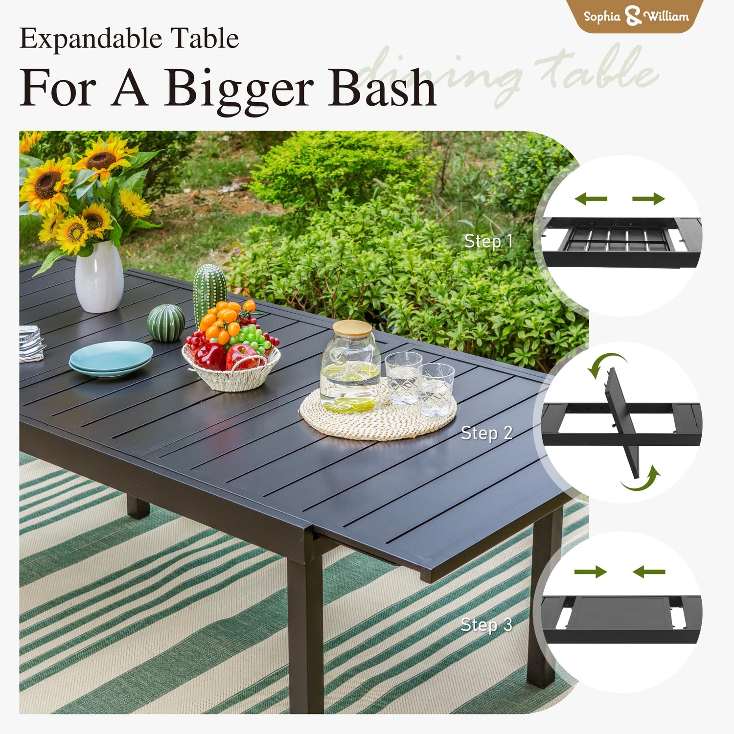 - E-coating Technology: Our furniture is coated with advanced E-coating technology, ensuring superior durability and a longer lifespan. The set includes a 6-person dining table paired with swivel chairs, making it perfect for a family of four. Enjoy the outdoors with this durable and stylish set that's designed to last