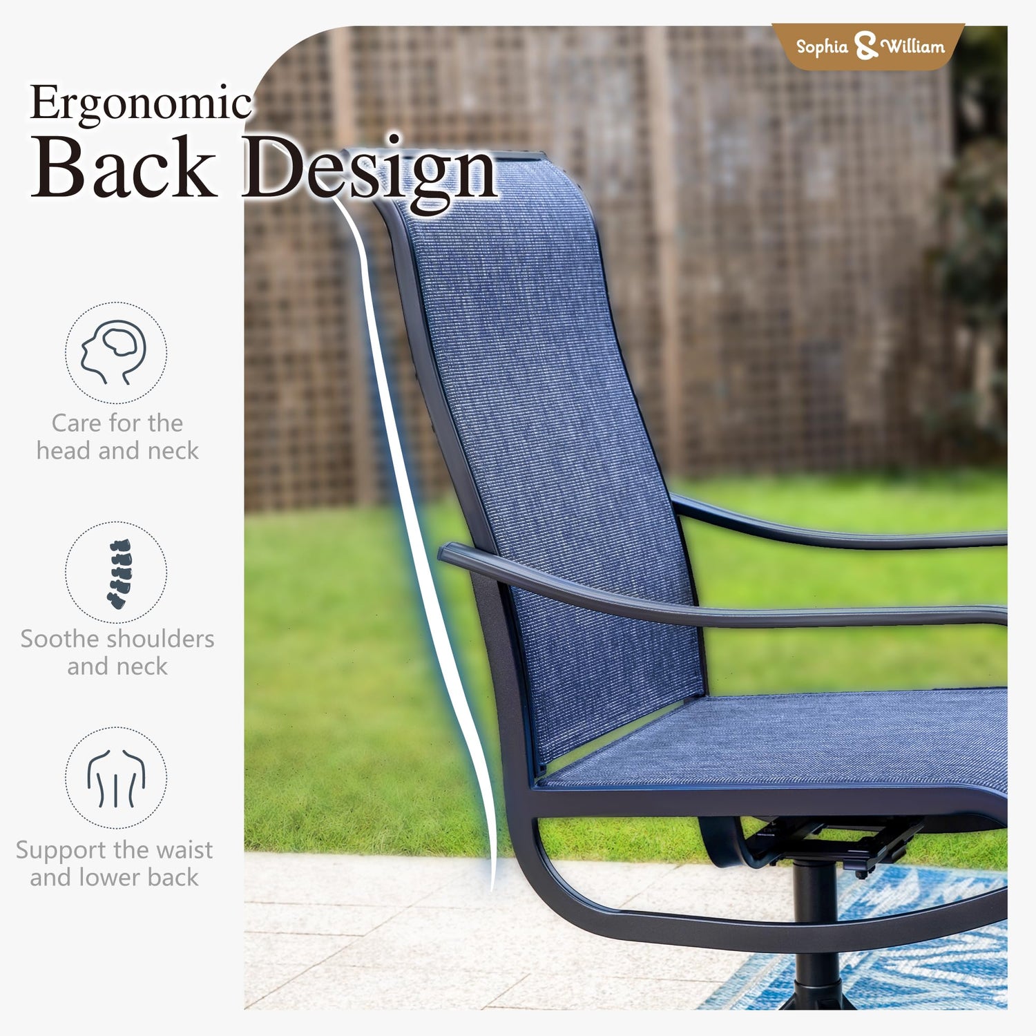 - Humanized Swivel & Rocking Patio Chairs: With a smooth 360-degree rotation for easy seat turning, these chairs allow you to move your waist and legs when seated for long periods. The slight rocking design enhances relaxation, letting you enjoy your leisure time in any posture you like