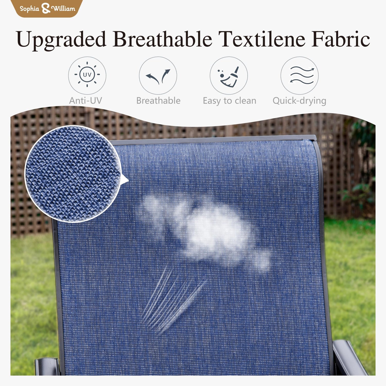 - Upgraded Fabric: This chair features a premium Outdoor textilene fabric, renowned for its exceptional durability and not easy to fading. Crafted to withstand the test of time, this fabric ensures long-lasting comfort and breathability, while remaining easy to clean