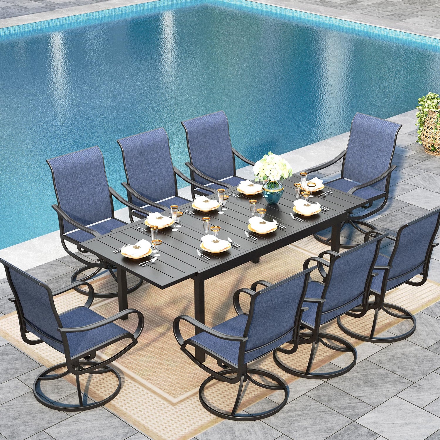 Sophia & William Outdoor Dining Set Patio Dining Sets Patio Table and Chairs Set 9 Pieces Outdoor Dining Table for 8 with Swivel Patio Chairs Patio Set for Garden Pool All Weather Blue