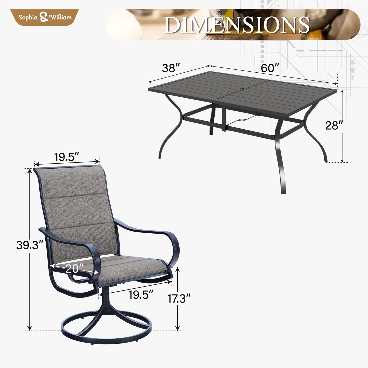 Sophia & William Patio Dining Set 7 Pieces, 6 x Patio Dining Swivel Chairs Padded with 1 Umbrella Table, Outdoor Table and Chairs for Lawn Garden
