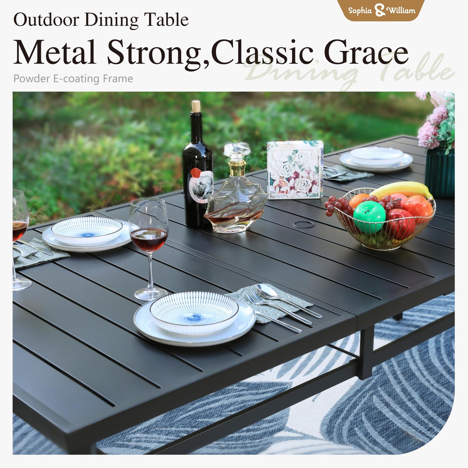 Sophia & William Patio Dining Set 9 Pieces, Patio Table and Chairs Set for 8, 83"x 39" Large Rectangular Metal Dining Table and 8 x Lightweight Aluminum Stackable Chairs (Beige)