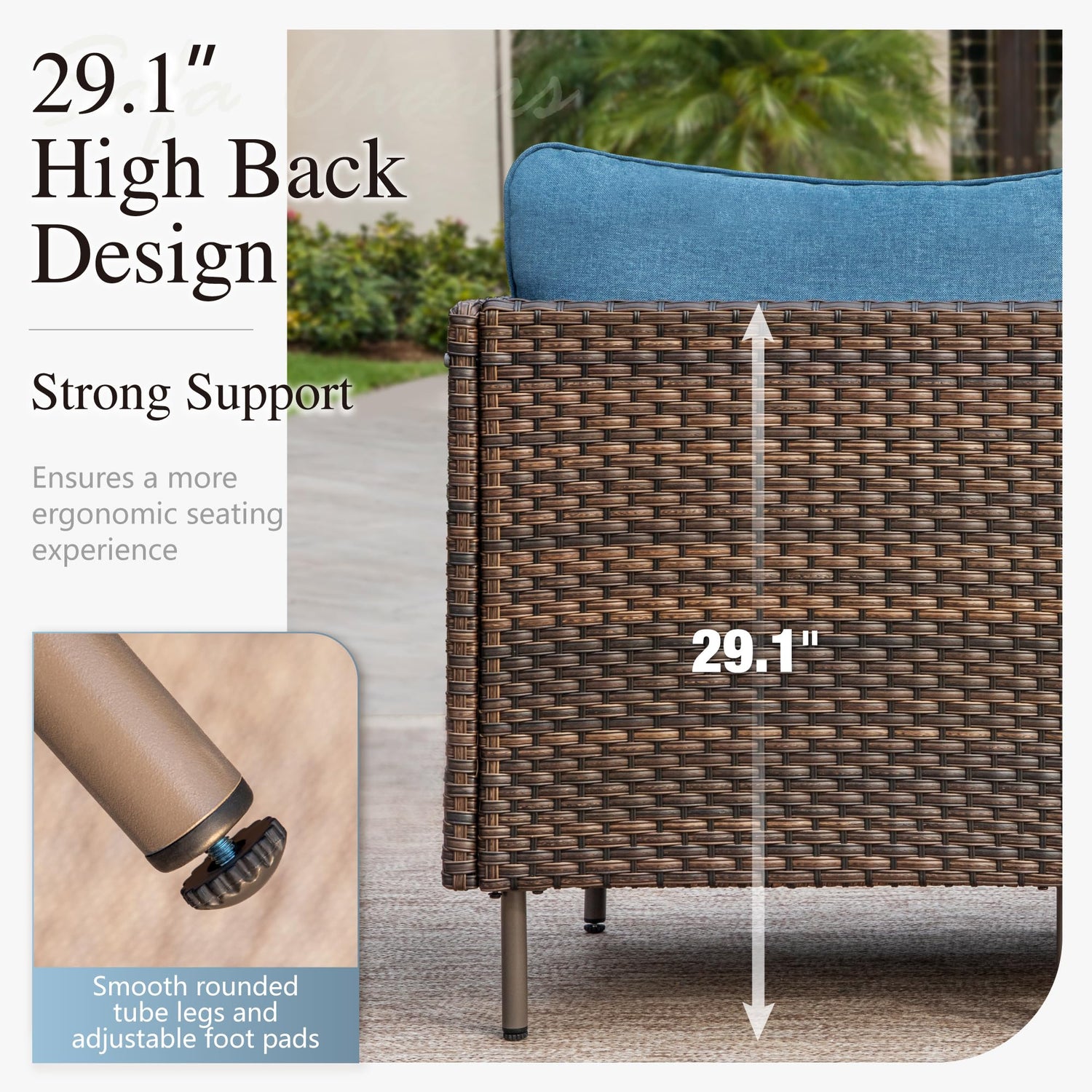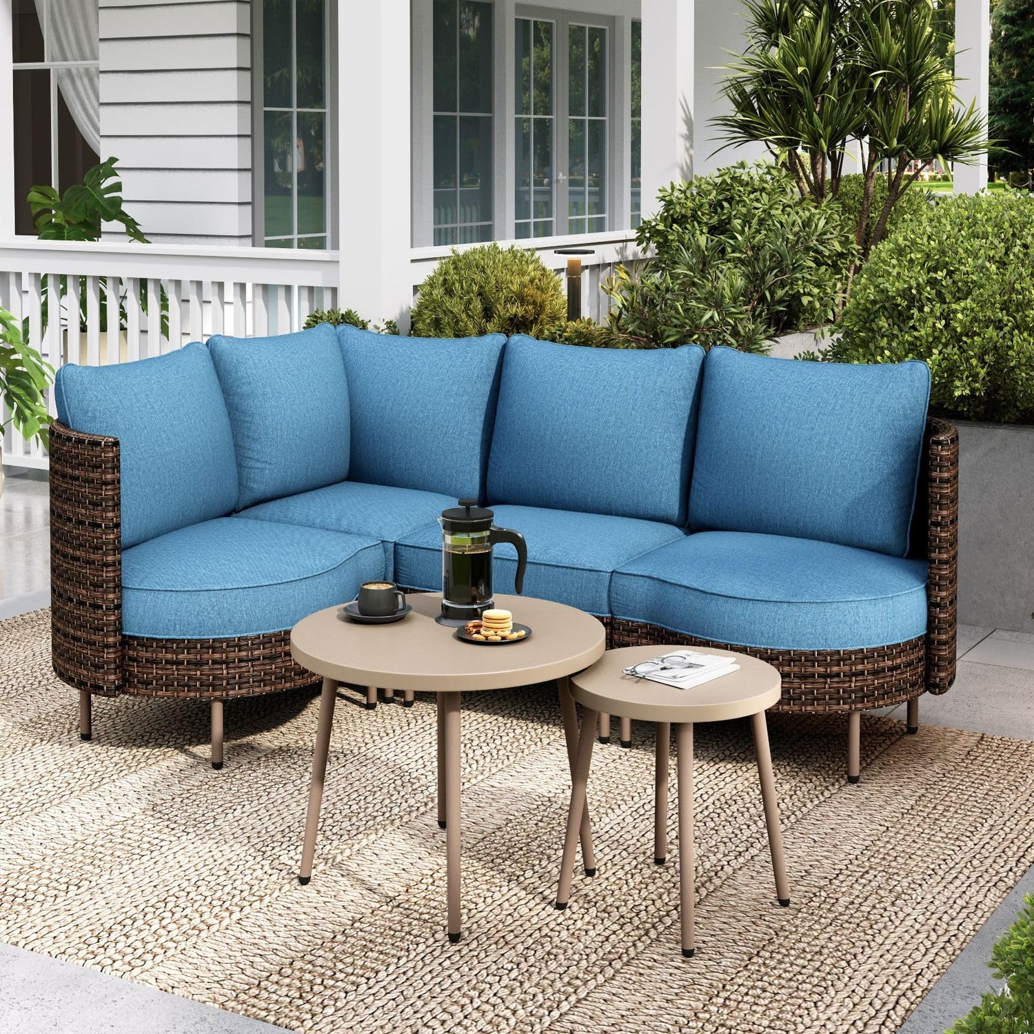Sophia & William Wicker Patio Furniture Set, Curved Outdoor Sofa 4 Seats Conversation Set with Coffee Table, L-Shaped Outdoor Sectional for Backyard, Porch, Blue