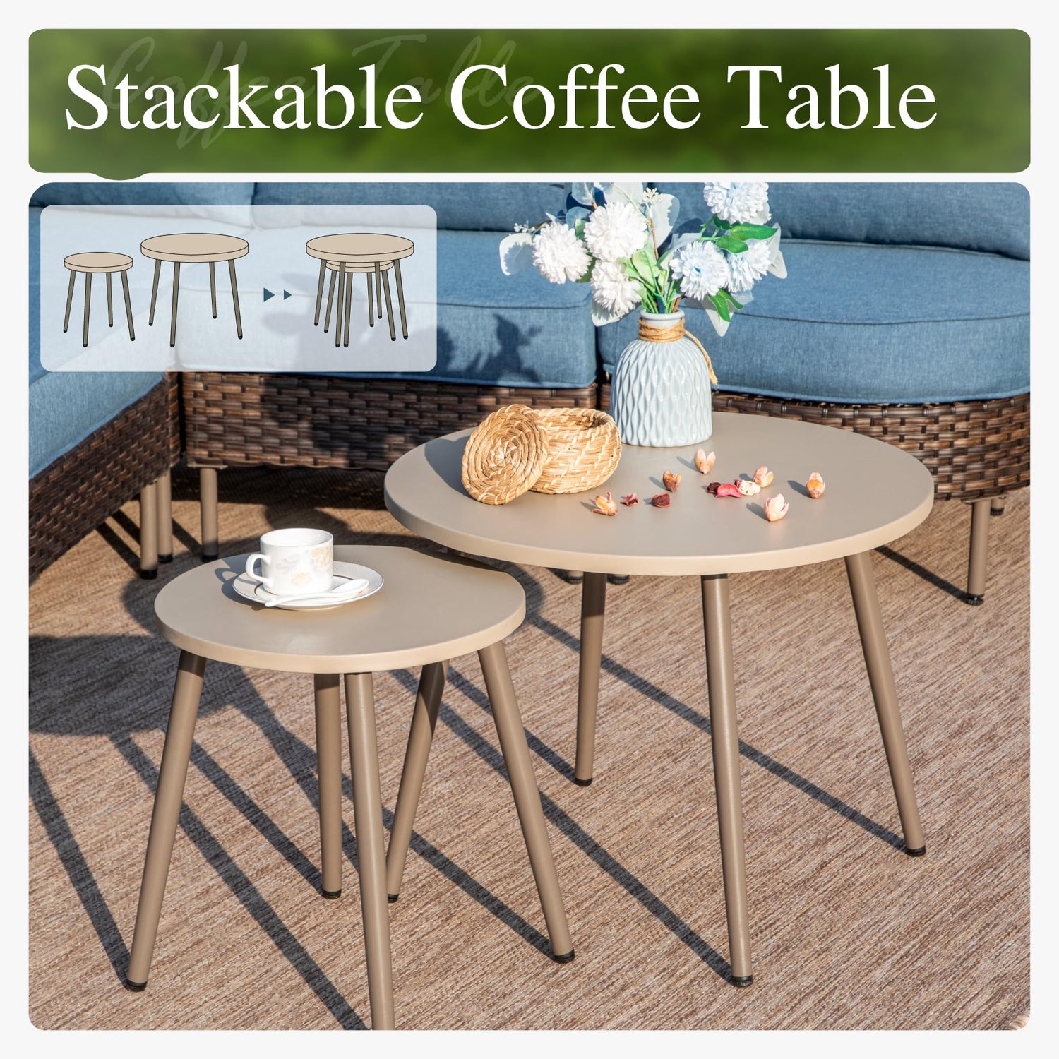 - 【Round Coffee Table】The coffee table top and sofa legs color complement each other, 23.6" large coffee table and 15 "small coffee table can be used separately or combined. When space is limited, you can also put the small coffee table stacked under the large coffee table. In addition, the coffee table adopts smooth round tube, which not only look more aesthetically pleasing but also add a touch of charm to the entire furniture set.