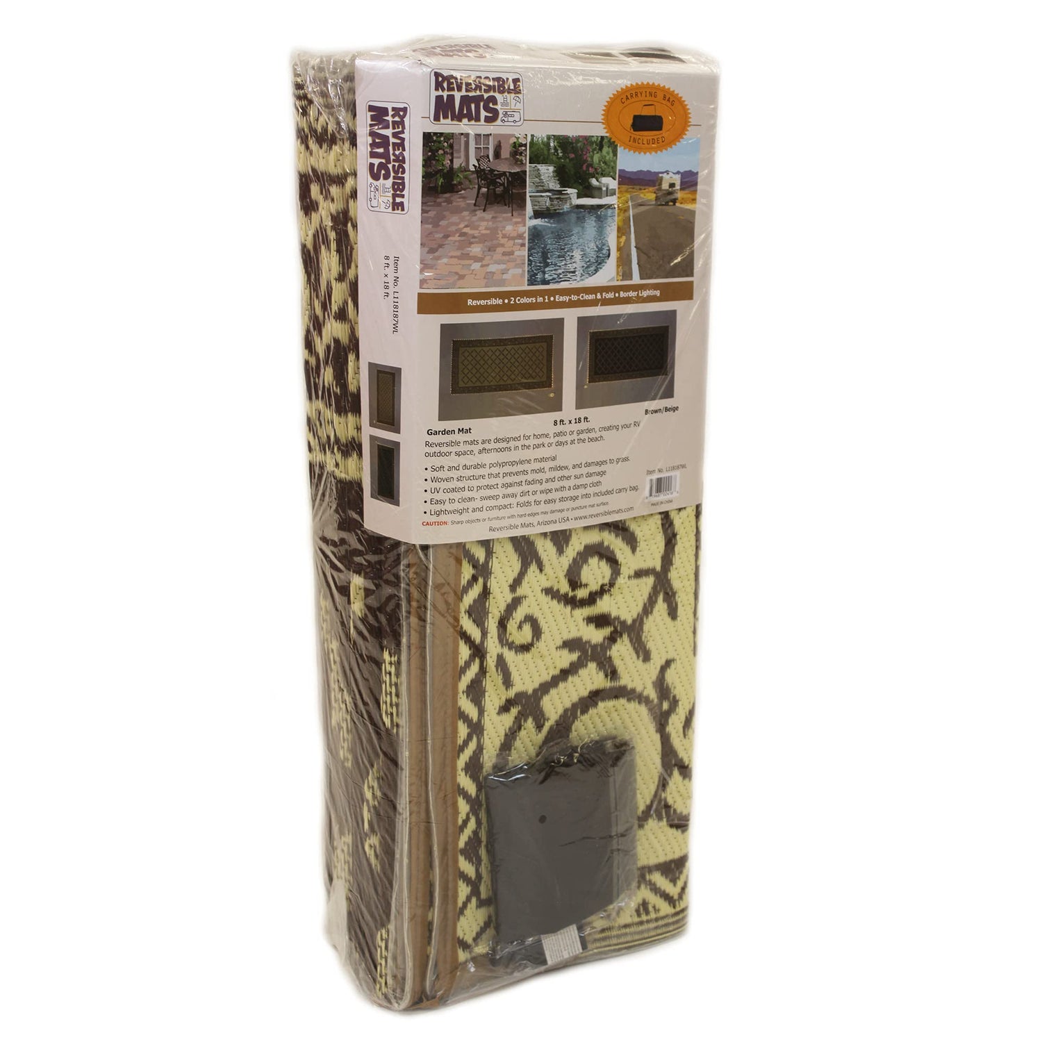 - QUICK & EASY CLEANING: Cleaning a mat hasn’t been easier, its woven structure allows you to easily sweep debris and spray down with water. CARRY BAG: Bring your mat on an outing with you! This reversible mat comes with a carry bag making it easy to pack up and bring on the go. This mat is perfect for picnics, cookouts, camping or beach trips.