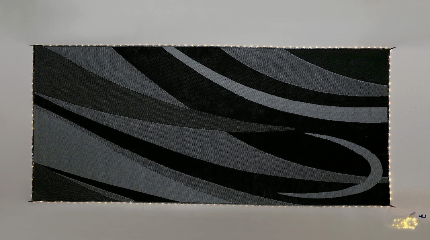 Stylish Camping LED Illuminated Patio Mat - Reversible RV Home Mat, White/Black with LEDs Light, 8x18
