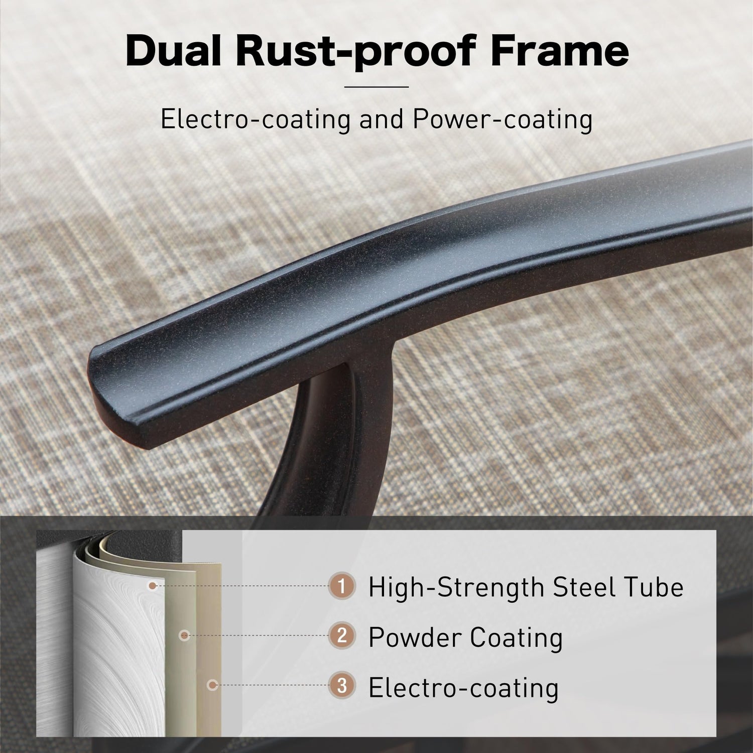• 【DUAL RUST-PROOF & HEAVY-DUTY FRAME】This outdoor dining set is made using high-performance E-COATING and POWDER-COATING dual rust prevention techniques, making it all-weather resistant, anti-rust, and easy to clean with no special care required. The patio dining set features a heavy-duty wrought iron metal frame. The patio dining chairs can support up to 350 lbs, while the patio dining table can support 165 lbs. It’s perfect for outdoor use