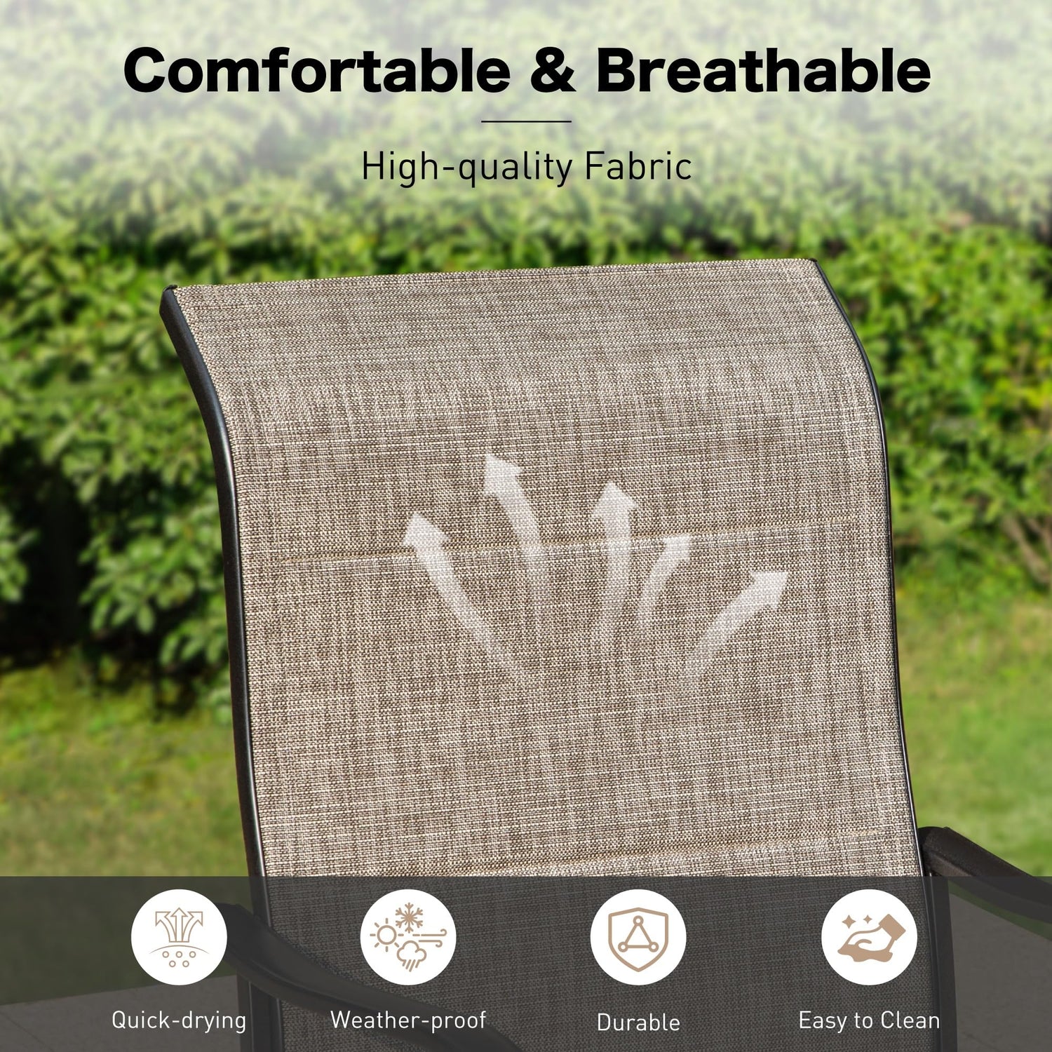 • 【UPGRADED PADDED ALL WEATHER TEXTILENE FABRIC】This patio dining chair is made of thicker, denser all-weather TEXTILENE fabric that is waterproof, dirt-resistant, fade-resistant, easy to clean, fast-drying, and adaptable to all kinds of weather. The breathability of this TEXTILENE fabric is excellent; even after sitting for long periods, it does not feel stuffy and can be used for extended durations. Additionally, we have added padding to the middle layer of the fabric to enhance comfort