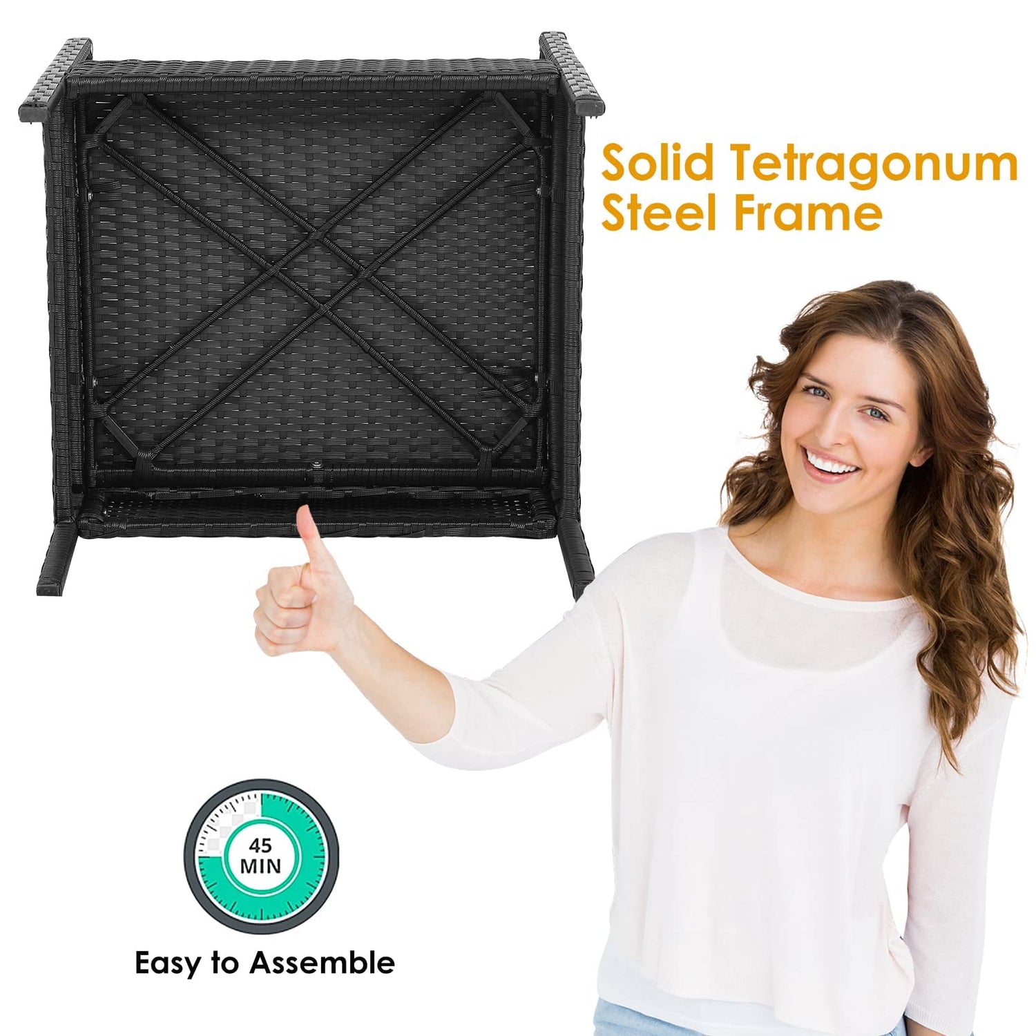 - Superior Steel & Rattan: Constructed of heavy-duty steel frame, the 4 pieces all possess high stability. And the anti-slip footpads well avoid ground scratches. Additionally, the rattan surface is appealing and weather-resistant. But to prolong the lifespan of the patio set, please avoid long-term exposure in extreme weathers.