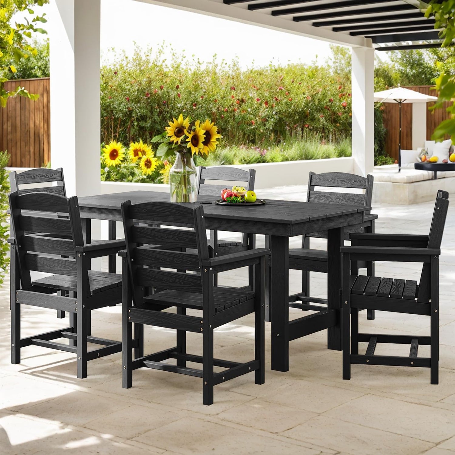 - 7-Piece Patio Table and Chairs Set for 6:This clearance outdoor furniture set includes 1 table for outside and 6 black patio chairs. With its modern patio furniture set design, this outdoor dining set blends seamlessly into various outdoor spaces, adding charm and elegance to your patio or garden—Perfect for outdoor dining