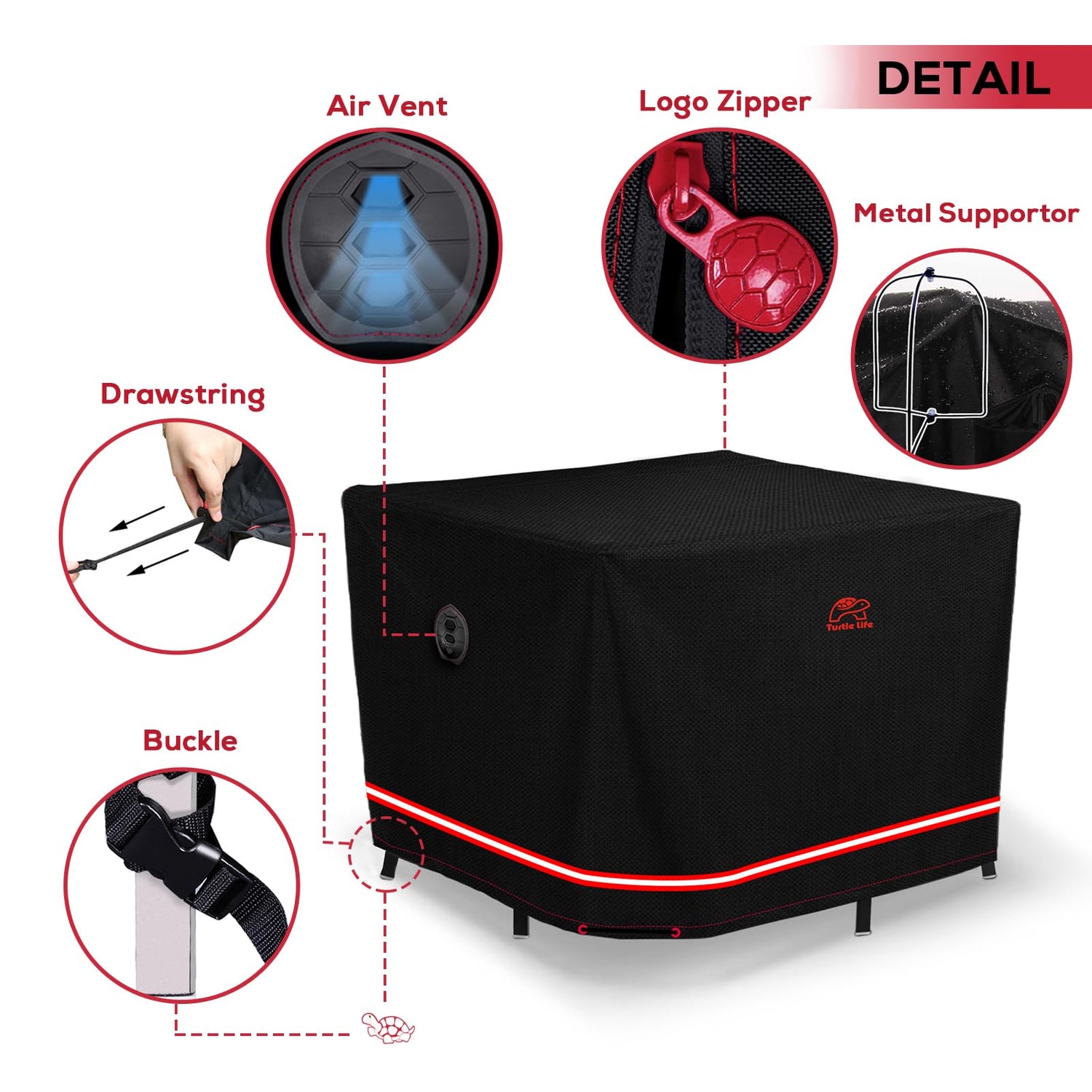Turtle Life Patio Furniture Sets Cover, Heavy Duty Square Durable Waterproof Outdoor UV Resistant Anti-Fading Dining Table Chairs Furniture Cover, Black, 56"L x 56"W x 29"H