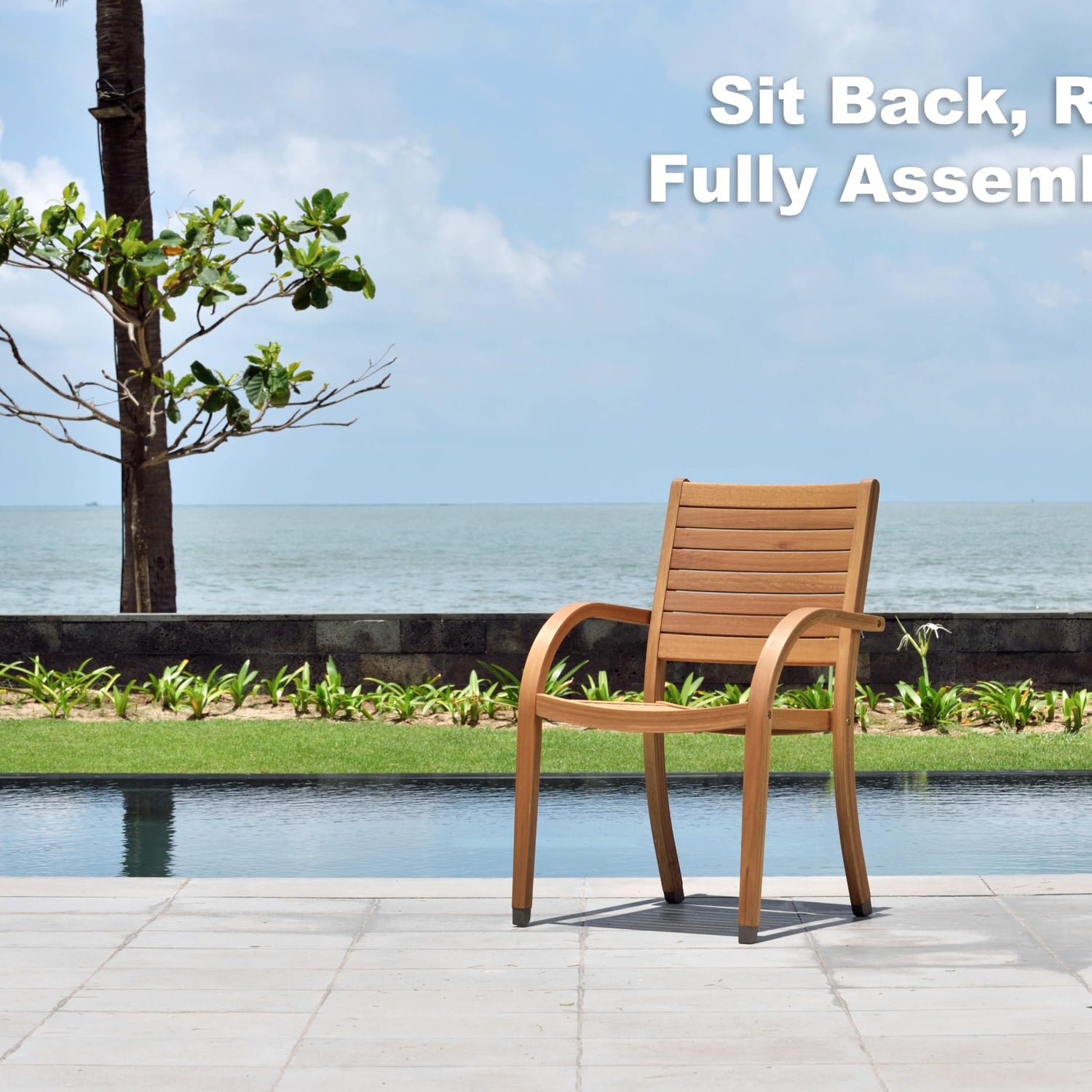 - [STACKABLE CHAIRS] Designed under a modern influence these patio chairs are durable, lightweight, and stackable.