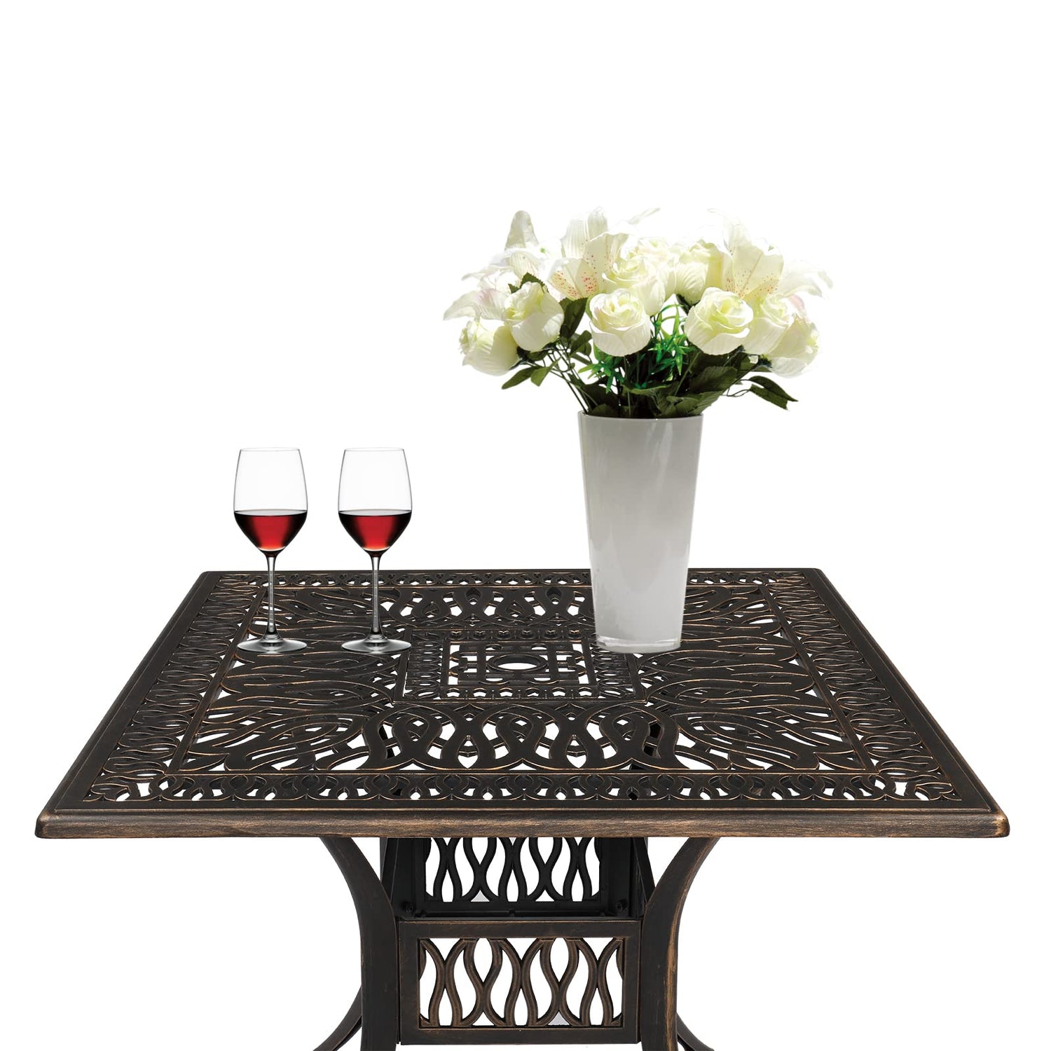 - Cast Aluminum Patio Dining Set: The patio table and chairs are crafted from cast aluminum, a material renowned for its high strength, corrosion resistance, and weather resilience. This ensures not only stability and weight-bearing capacity but also long-lasting durability, making it an exquisite and high-quality furniture option.