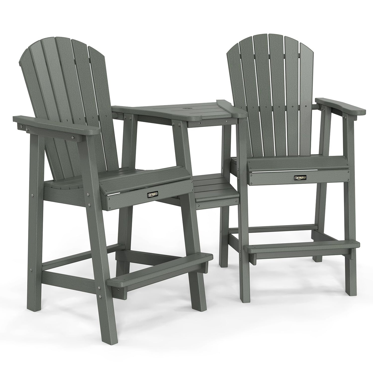 VINGLI Tall Adirondack Chairs Set of 2 with Removable Double Connecting Trays, HDPE Adirondack Bar Stools Poly Deck Chairs, 350LBS Capacity (Grey)