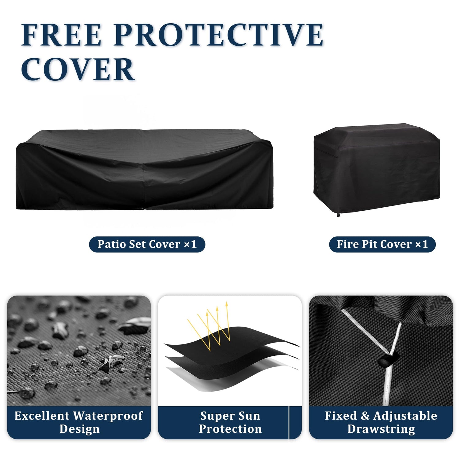 - 【Product Packaging and After-sales】The outdoor furniture set consists of 8 pieces: 2 corner sofas, 4 single sofas, 1 fire pit table, 1 coffee table, and 2 waterproof covers. For safety during transportation, the products will be divided into four separate boxes and may arrive at different times. We appreciate your patience during this time. If you have any questions or encounter any issues with these outdoor sofas, please feel free to contact us for assistance.
