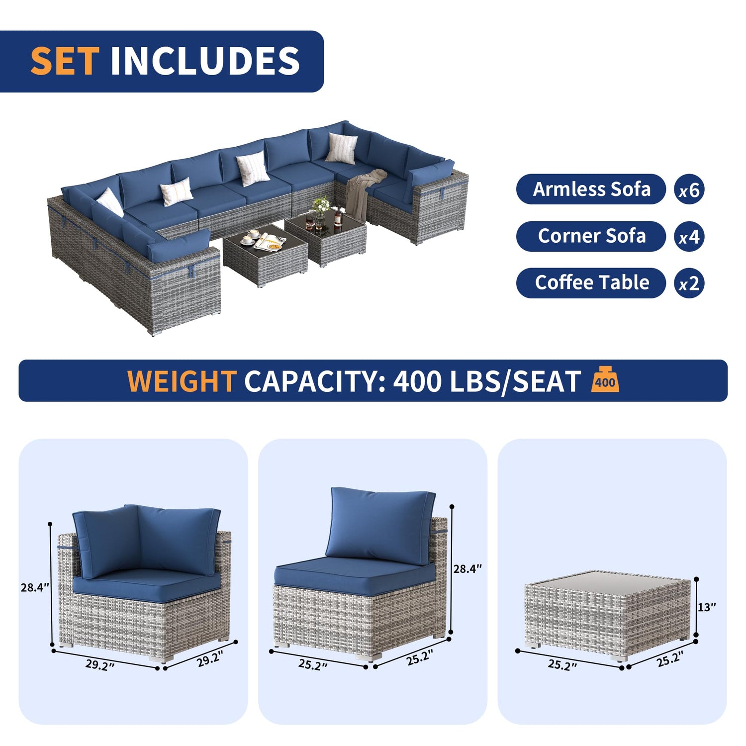 VONZOY Patio Furniture Set, 12-Piece Outdoor Sectional with Free Cover, All-Weather Wicker Patio Conversation Sets for Backyard (Grey with Navy Cushion)
