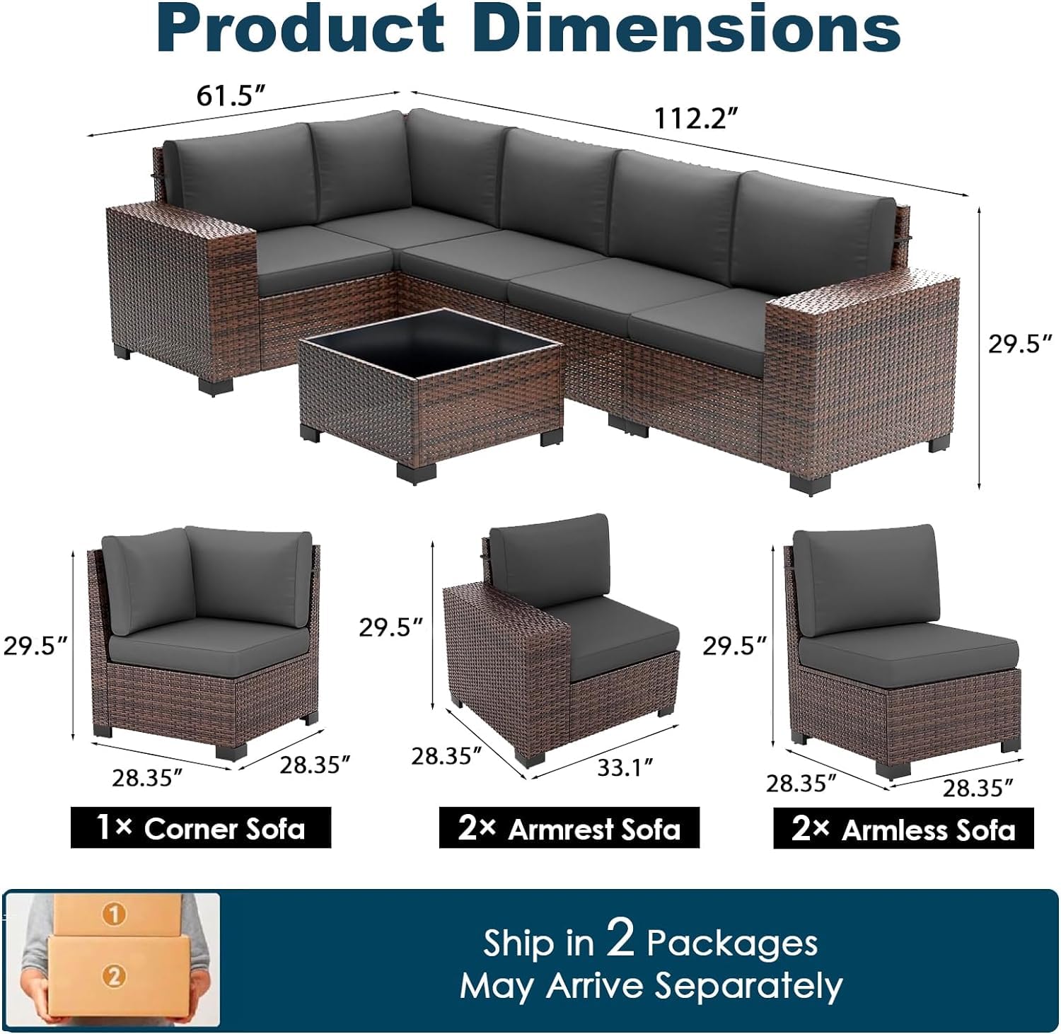 - 【Waterproof Cover Included】 Your patio sofa set now comes with a waterproof cover made from Oxford cloth. Enhanced with PVC coating on both inner and outer layers, it ensures superior waterproofing. Bid farewell to worries about your outdoor furniture set getting wet in the rain.