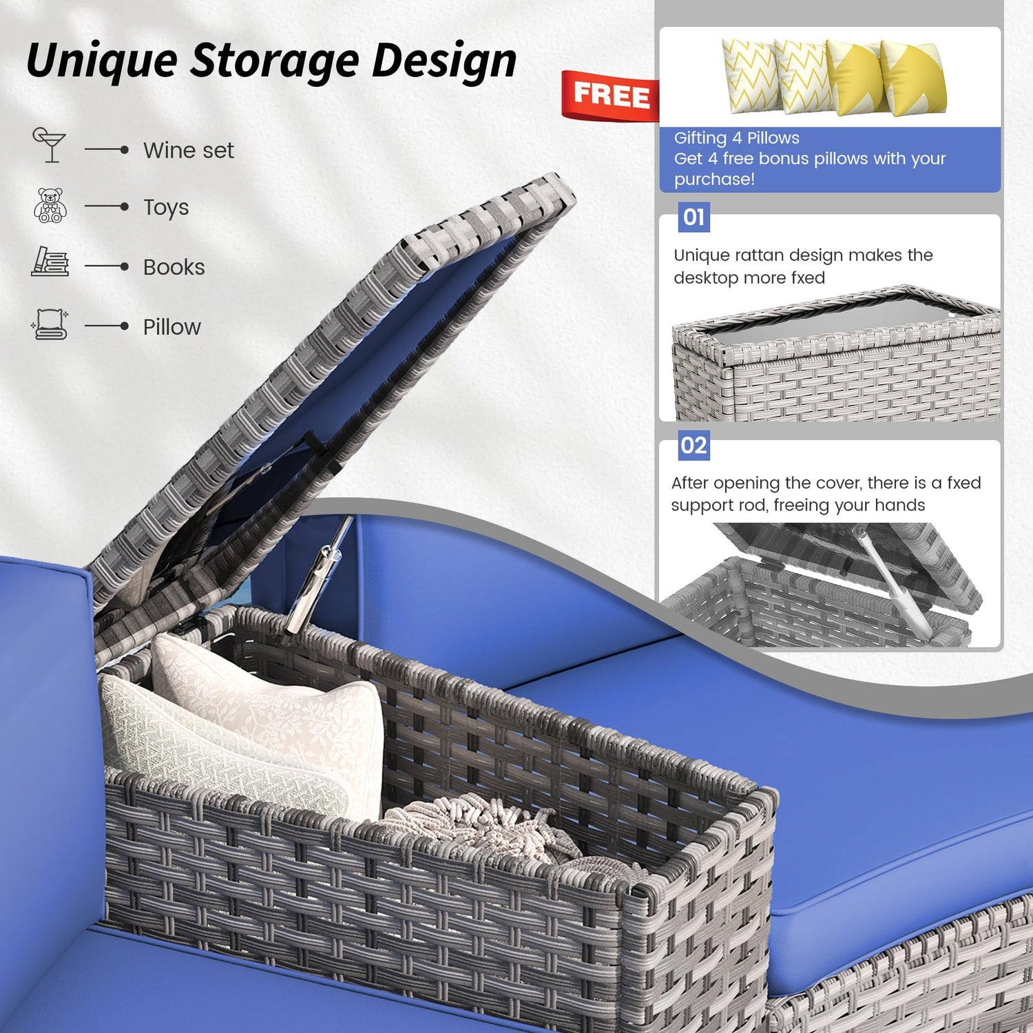 VONZOY Patio Sectional Furniture Outdoor 11-Piece Grey Rattan Curved Sofa Set with Storage Table, Pillows, Fit for Pool Backyard Balcony Porch Lawn (Navy)