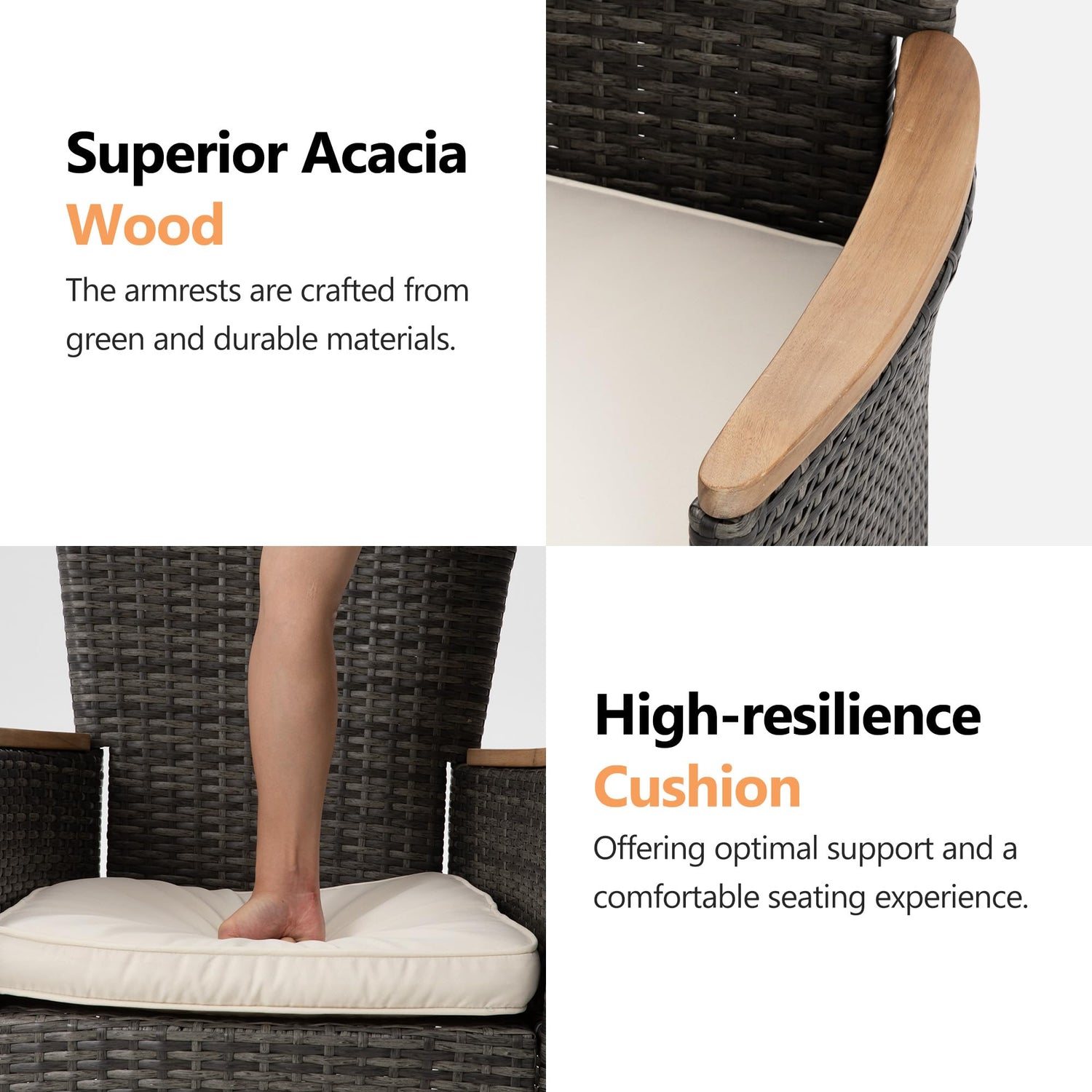 - 【Premium Acacia Wood for Natural Charm】Crafted from FSC-certified acacia wood, the tabletop and armrests showcase beautifully unique wood grain patterns. Naturally resistant to water and wear, this hardwood ensures long-lasting durability.