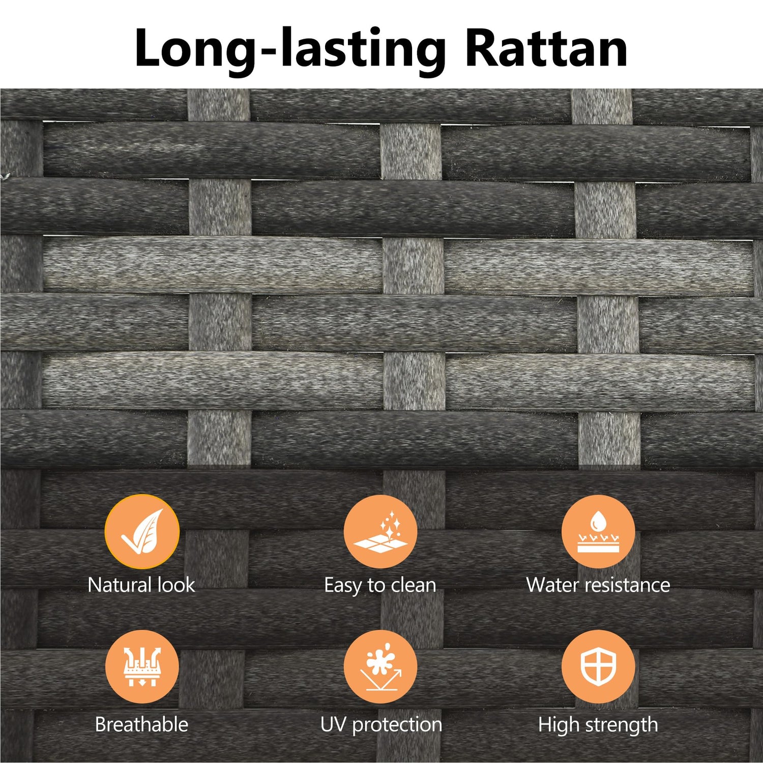 - 【Sturdy & Weather-Resistant Construction】The patio set features a heavy-duty steel frame that provides exceptional strength and stability. Wrapped in tightly handwoven PE rattan and treated for UV and water resistance, each piece is built to withstand sun, rain, and daily outdoor use.
